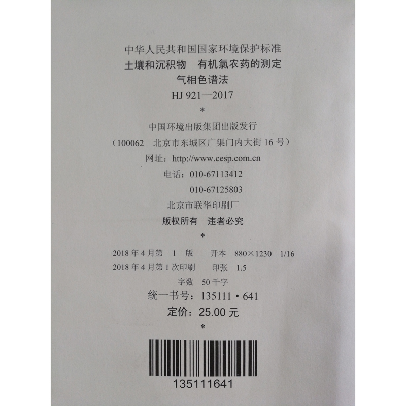 HJ 921—2017土壤和沉积物 有机氯农药的测定气相色谱法 国家标准GB 环境保护 环境科学 135111641