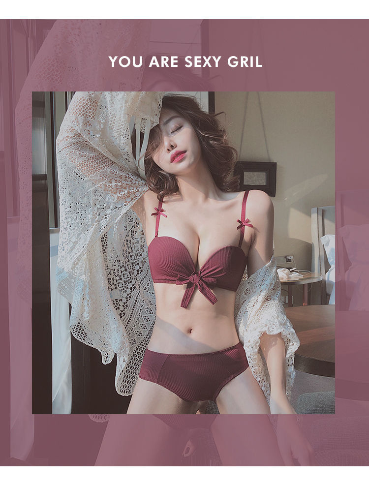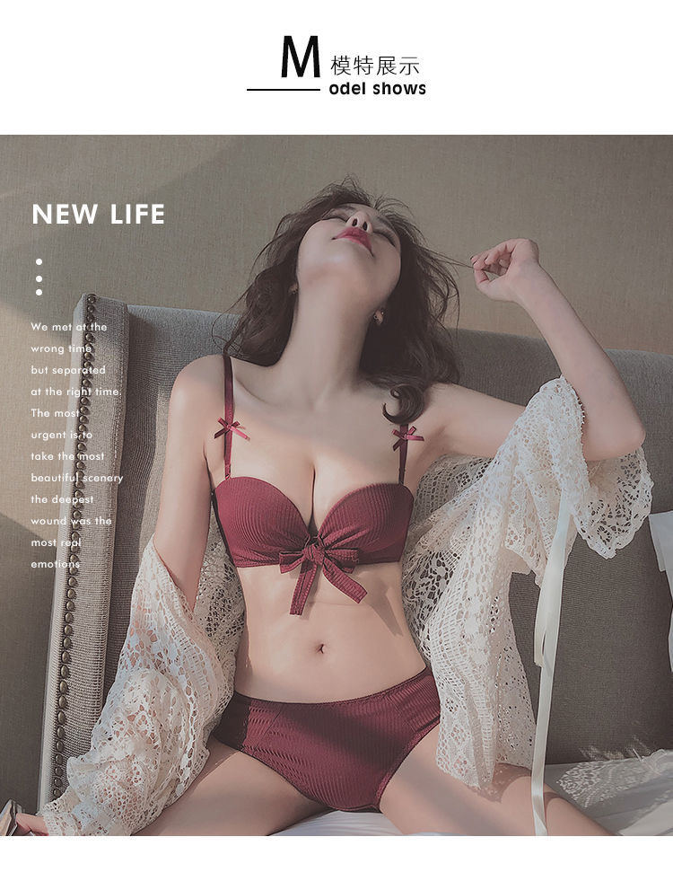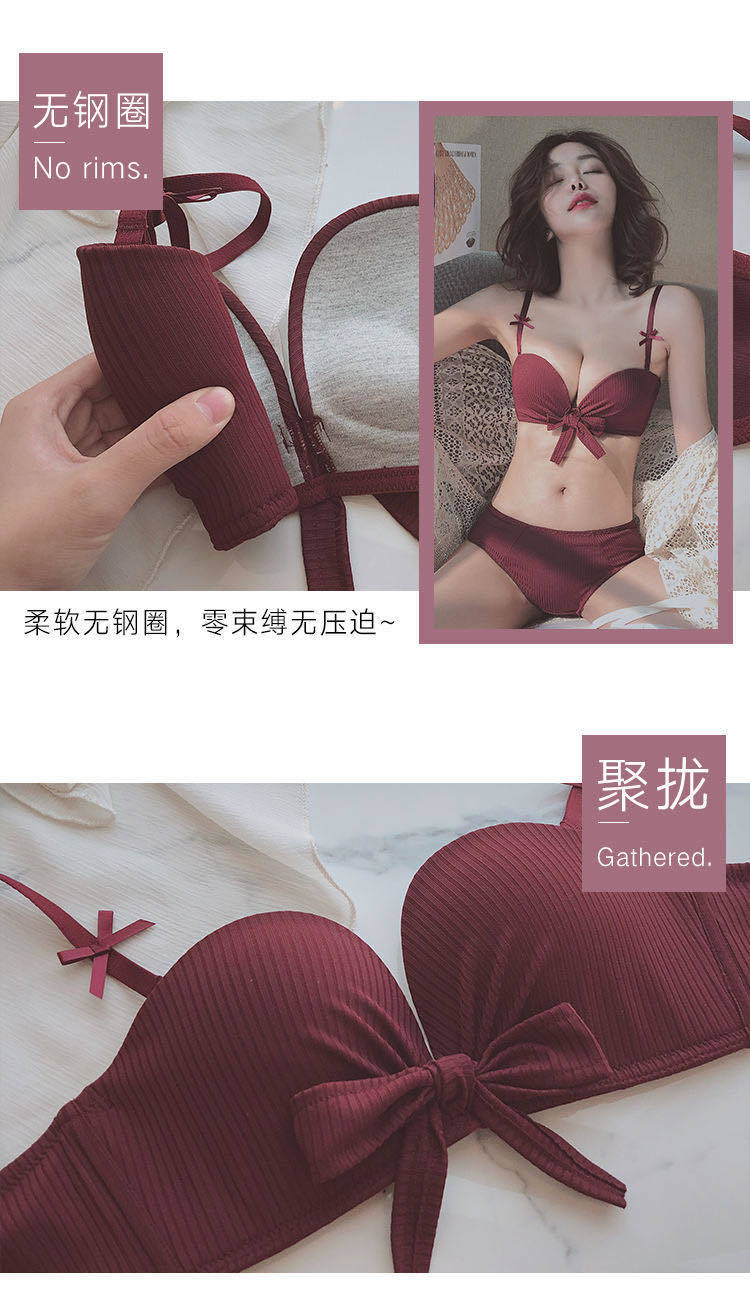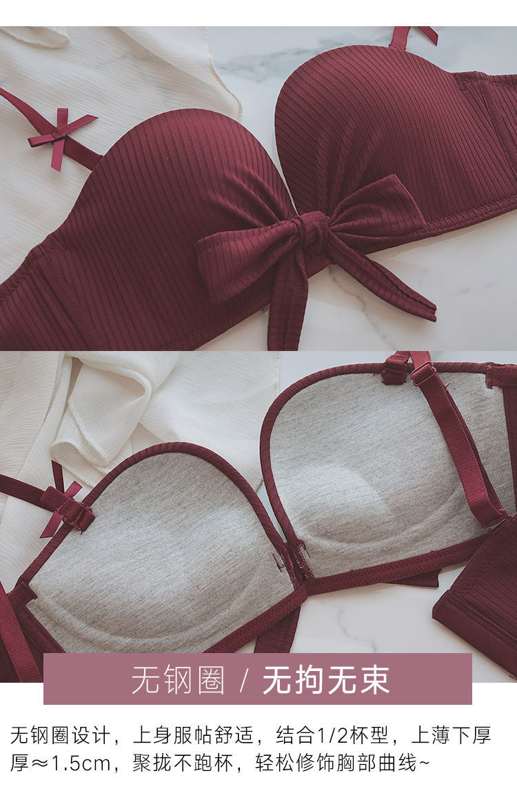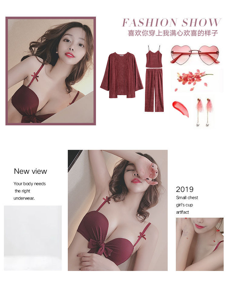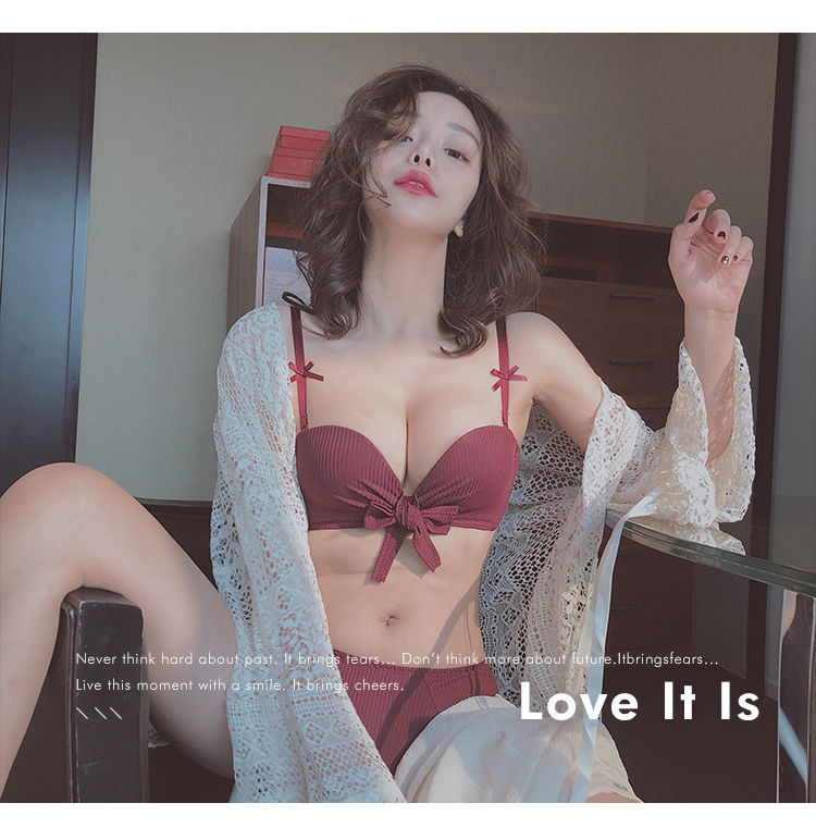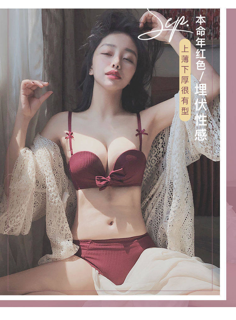 本命年性感蝴蝶结红色内衣套装女小胸聚拢无痕上托防下垂文胸罩