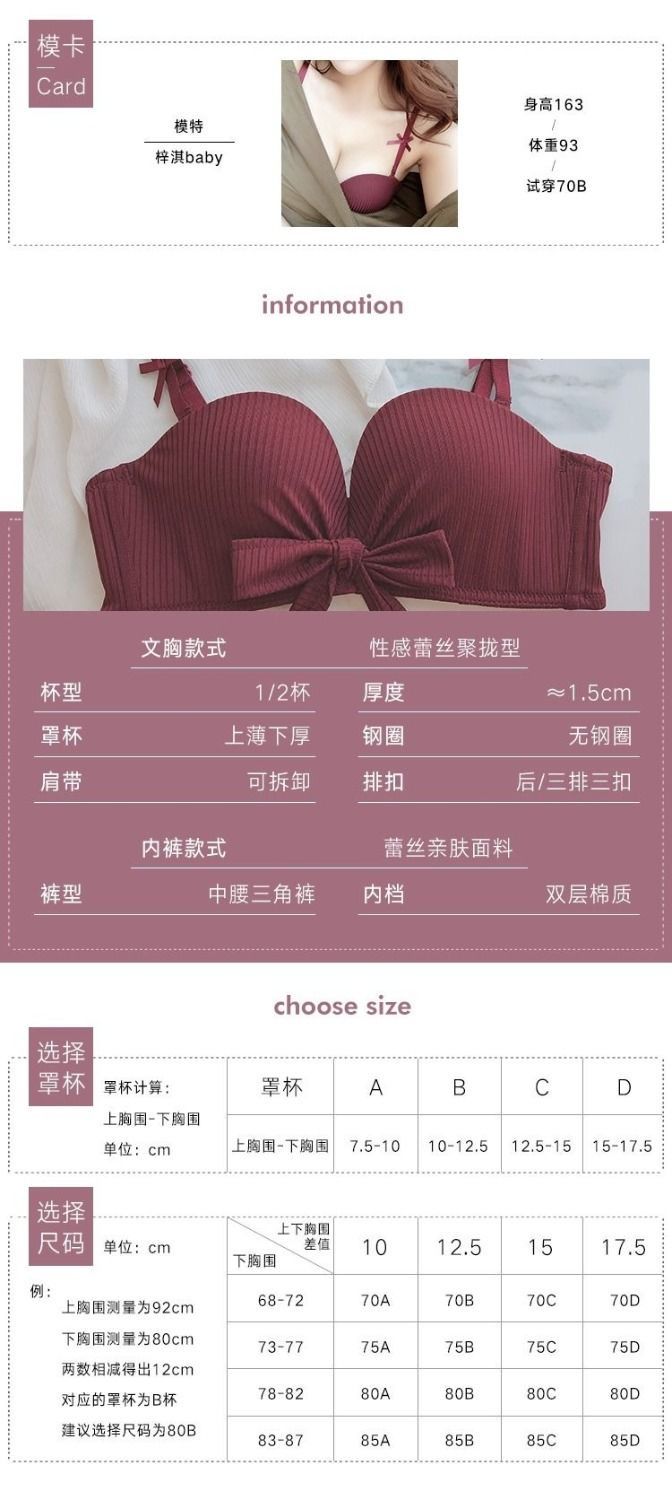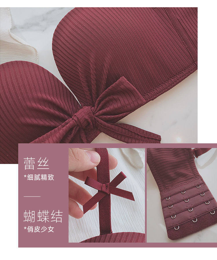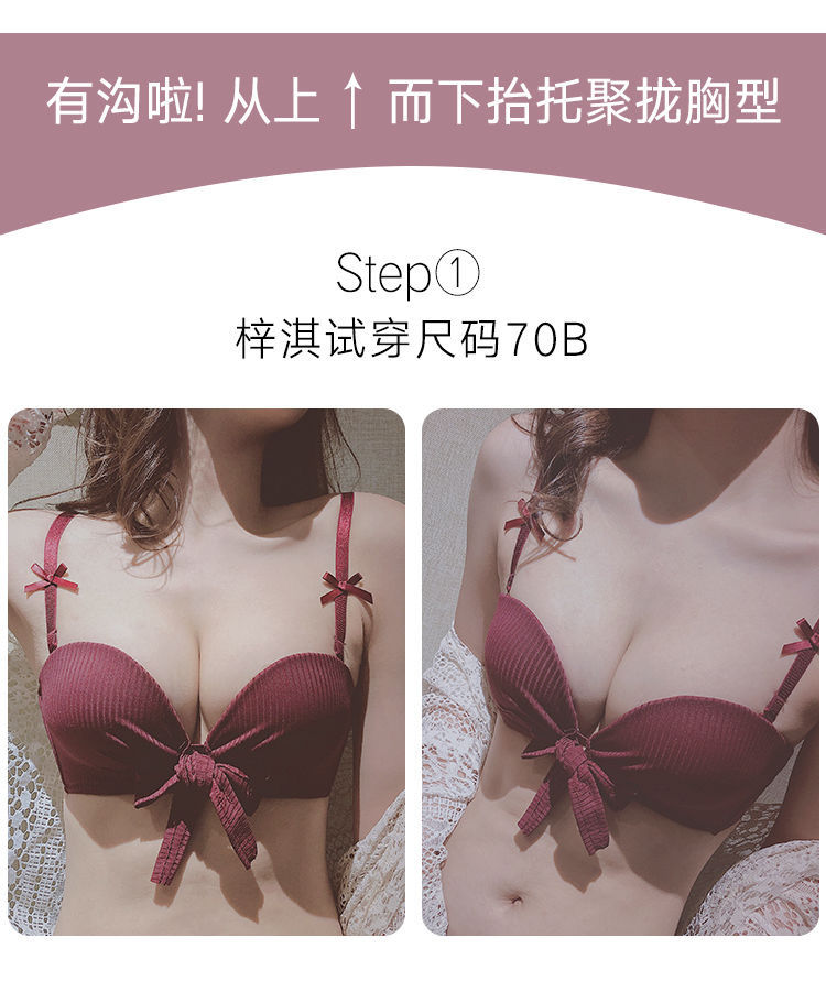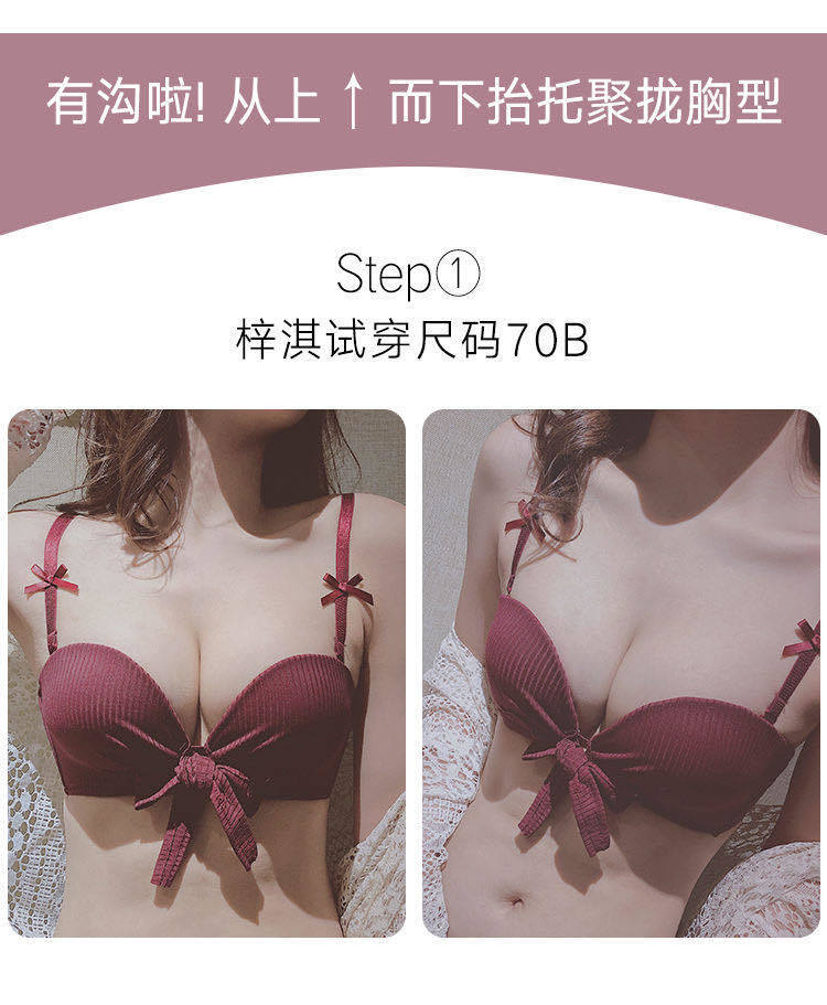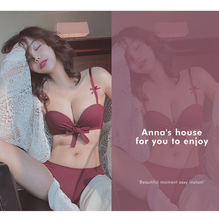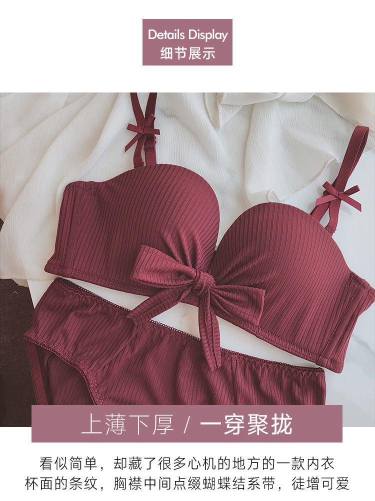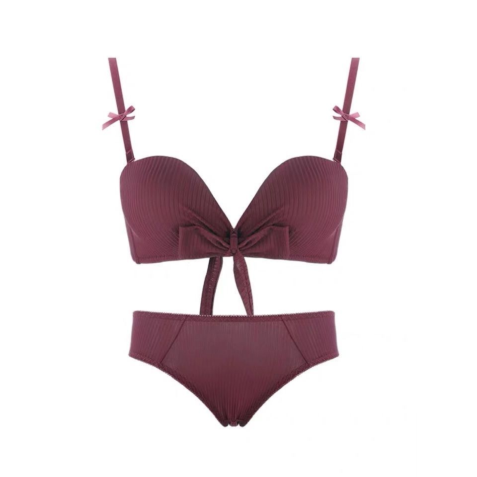 本命年性感蝴蝶结红色内衣套装女小胸聚拢无痕上托防下垂文胸罩