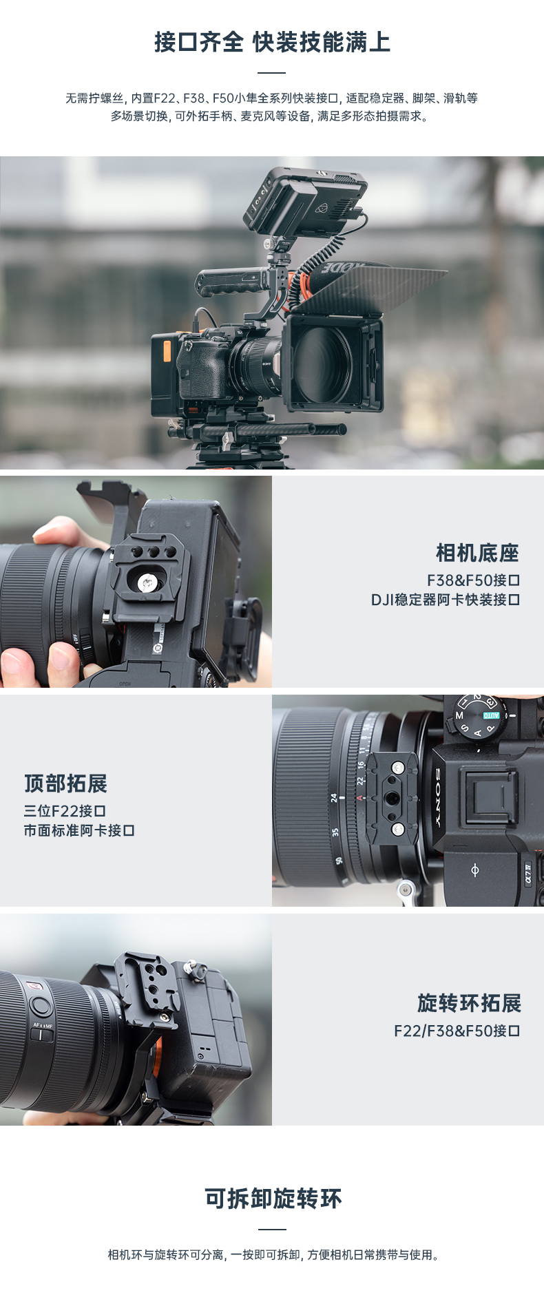 Ulanzi优篮子FALCAM小隼F22/F38/F50卡口横竖拍环形半笼适用SONY索尼E口大疆稳定器RS2/3/C2微单反镜头配件
