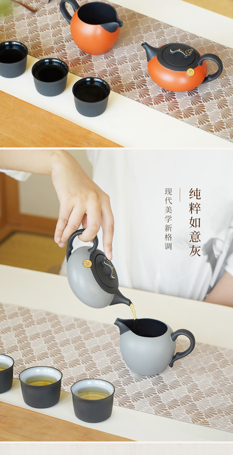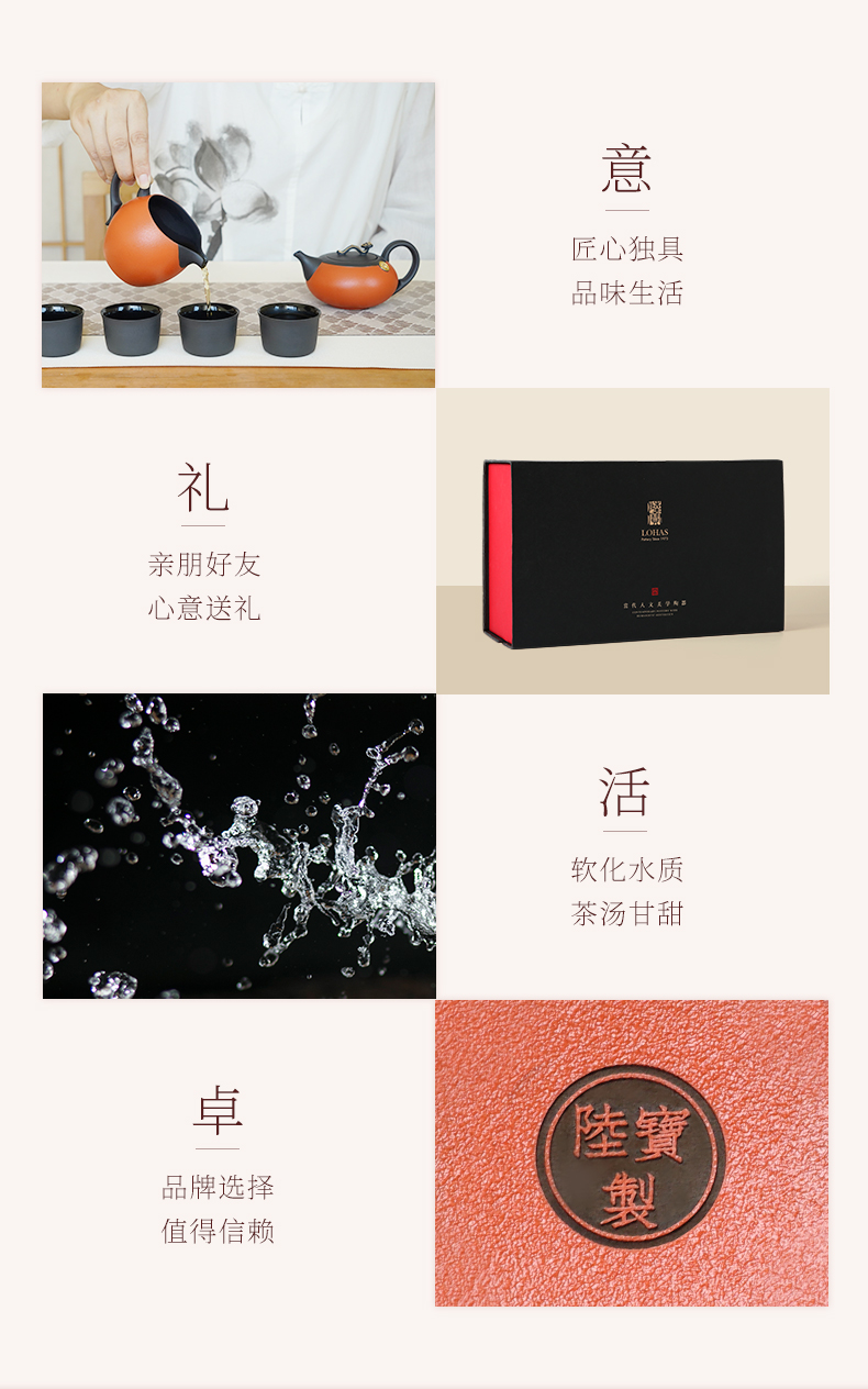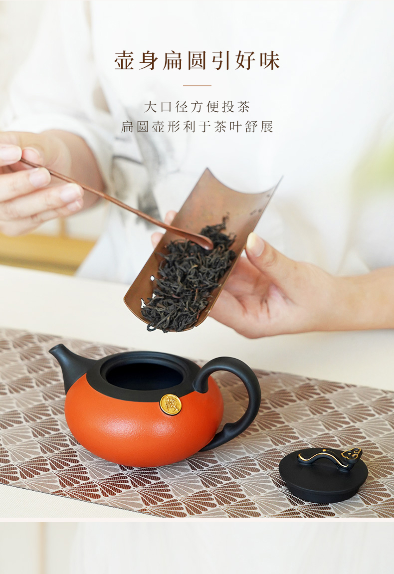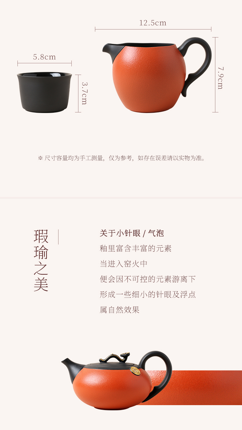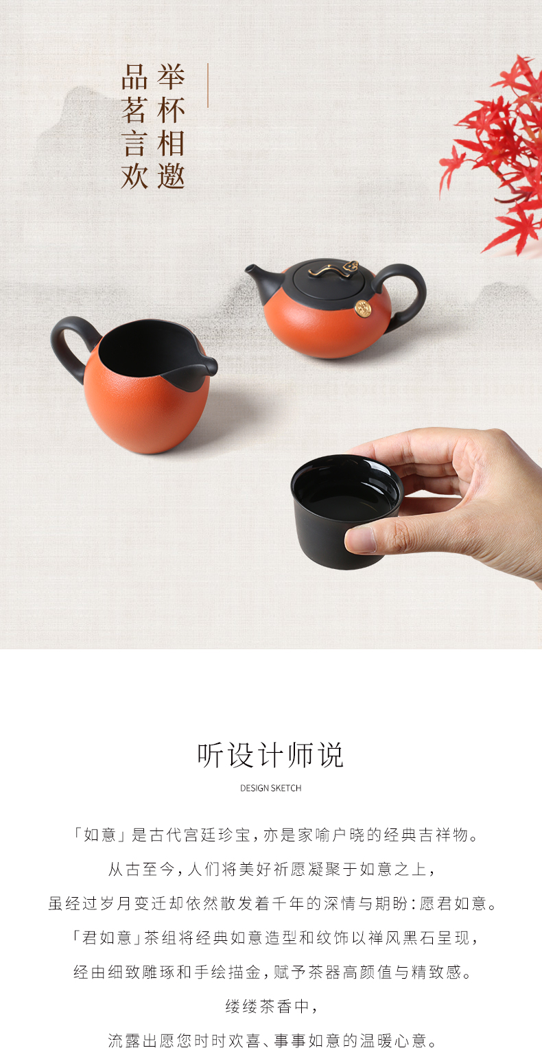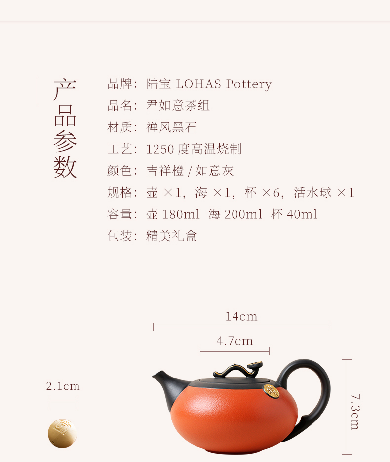 陆宝陶瓷君如意功夫茶具套装9件式礼盒装(吉祥橙)