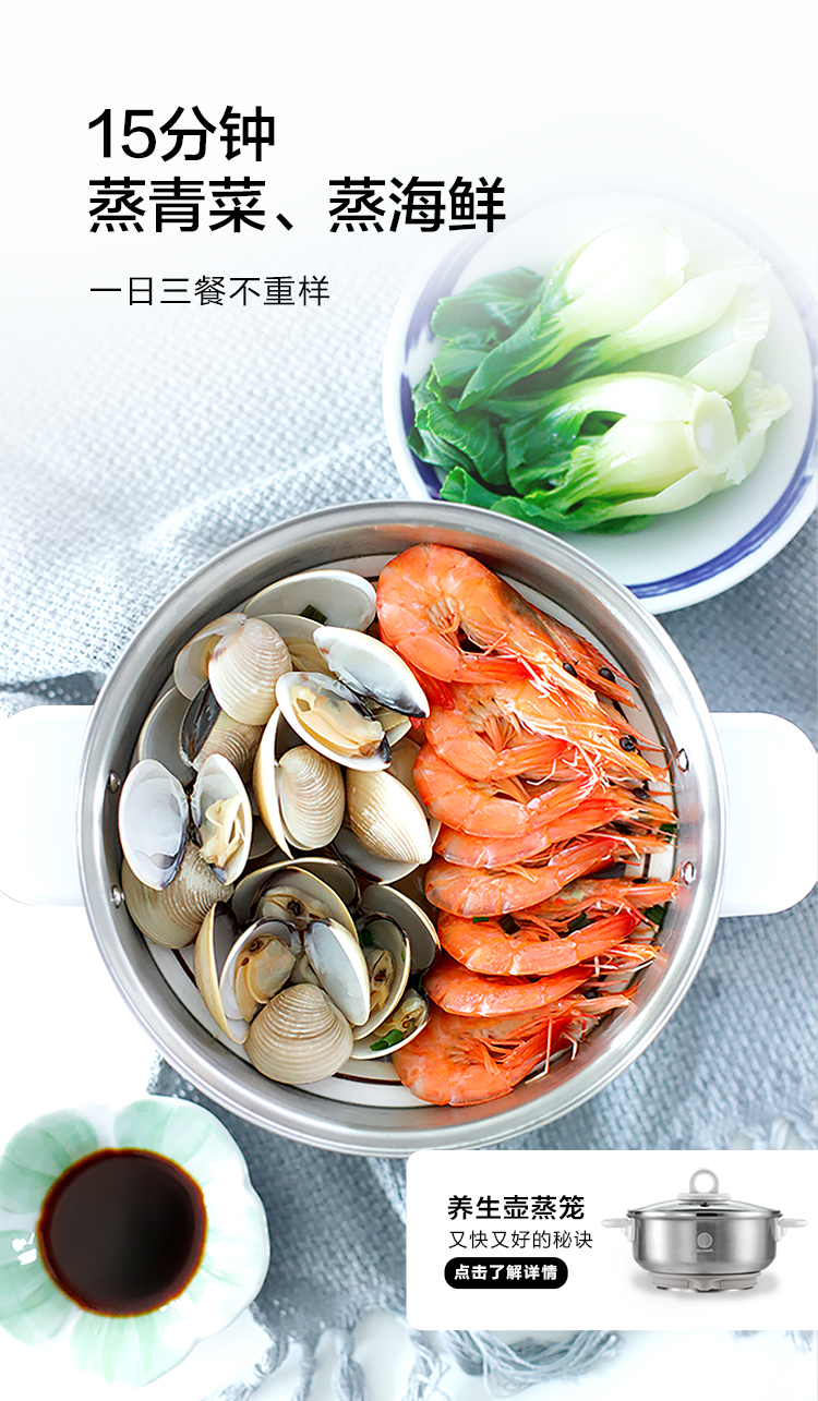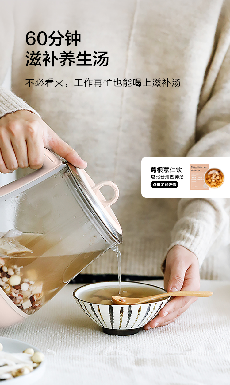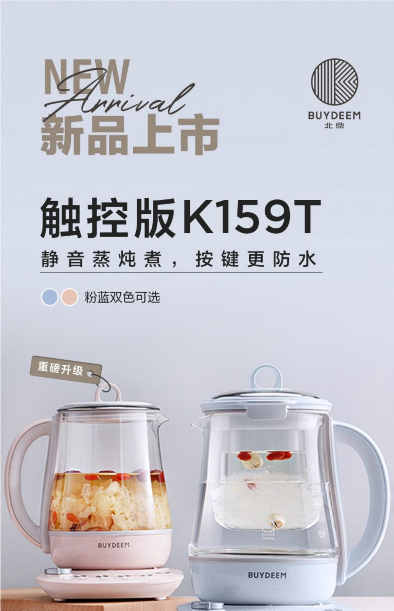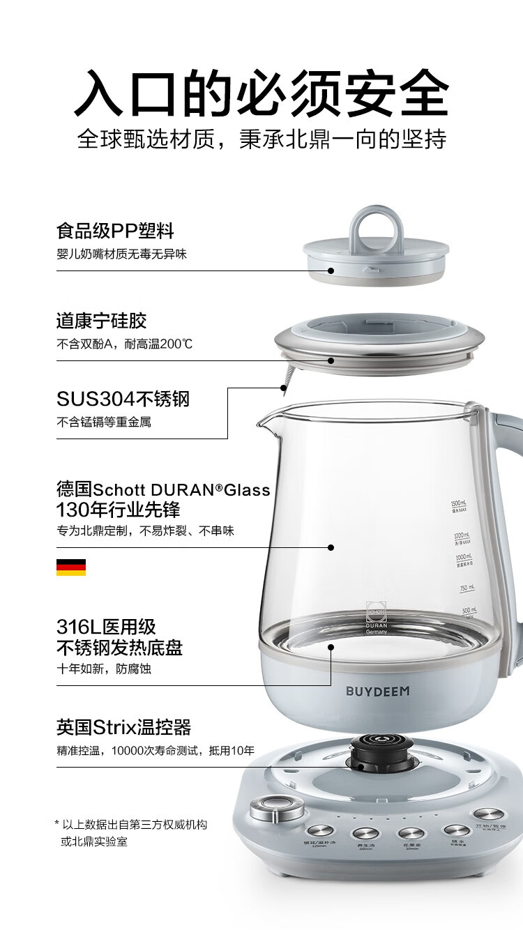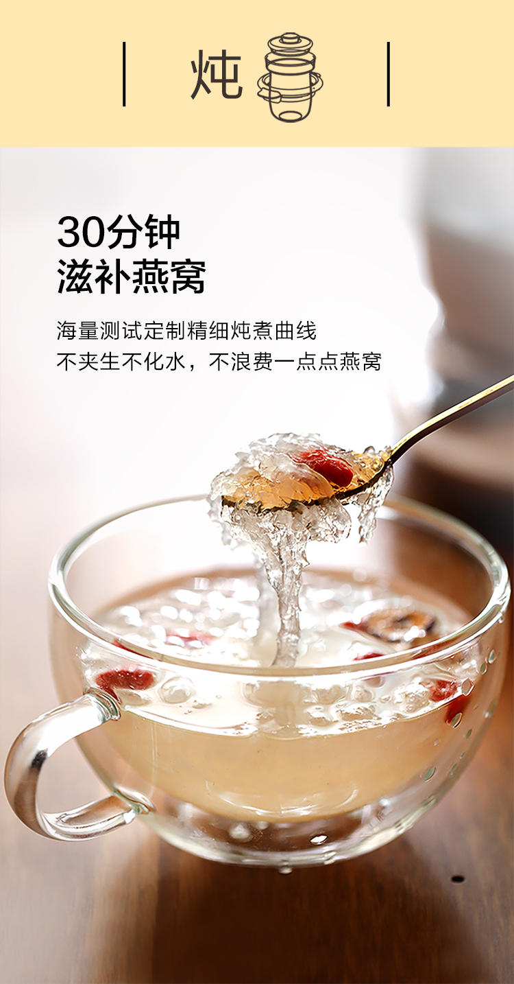北鼎(Buydeem)燕窝高级养生壶 1500ml智能家用煮茶壶 办公室多功能花茶煮茶器 隔水炖 快手蒸 智能触控 K159T 茱萸粉(含燕窝炖盅)