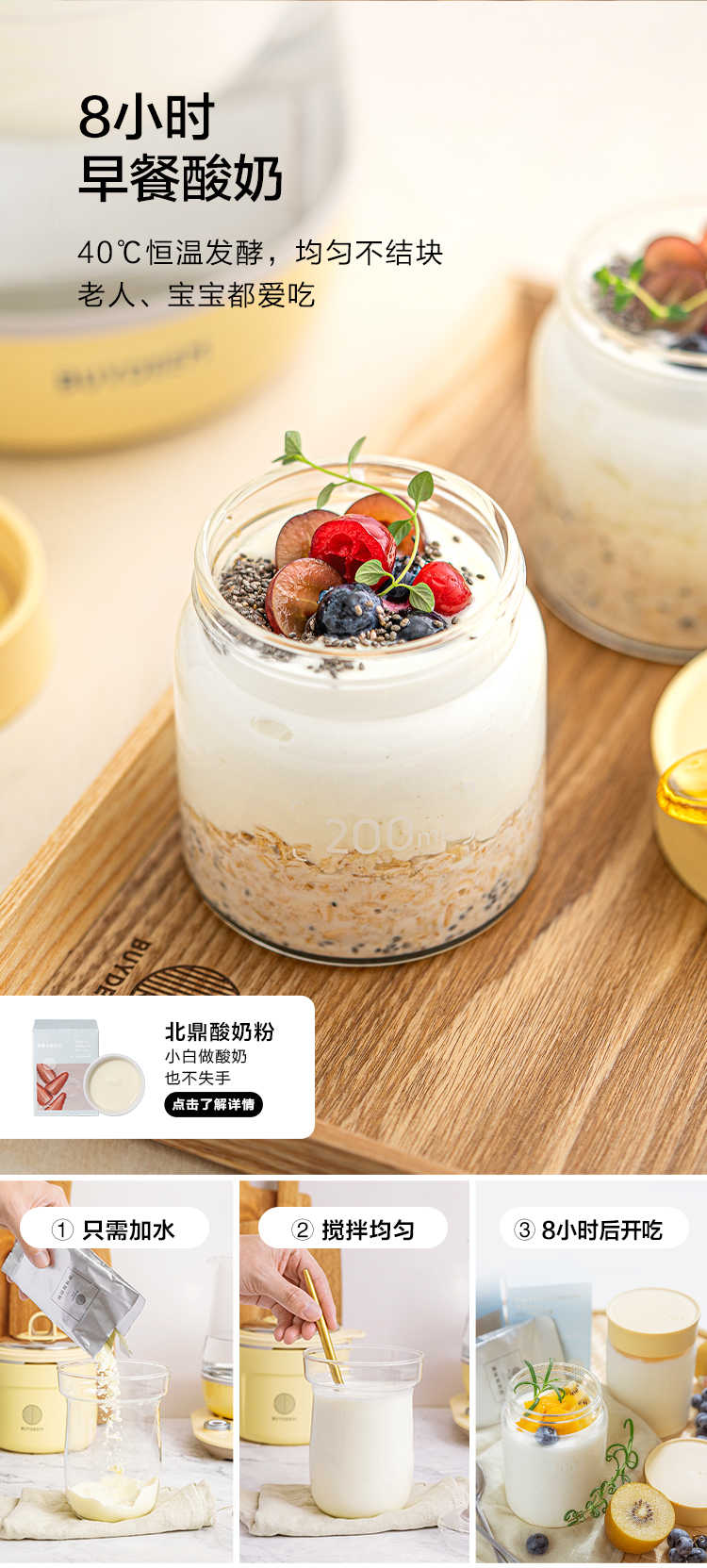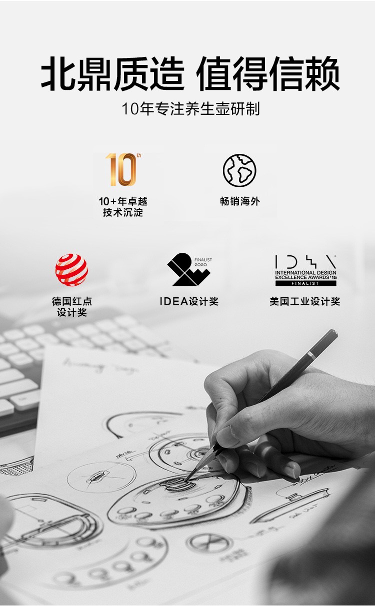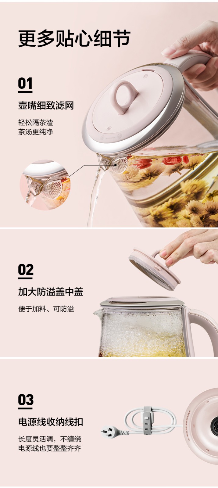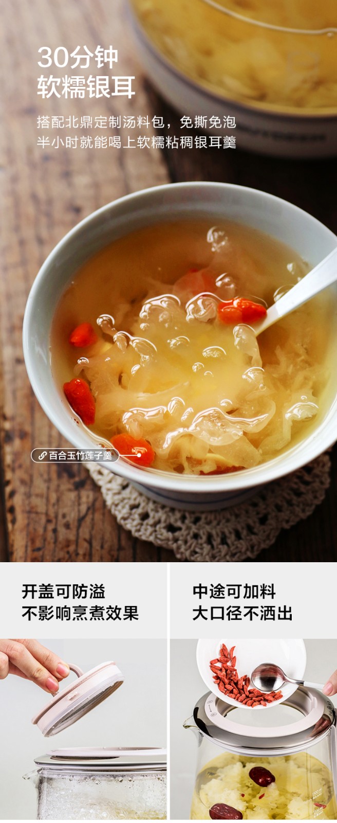 北鼎(Buydeem)燕窝高级养生壶 1500ml智能家用煮茶壶 办公室多功能花茶煮茶器 隔水炖 快手蒸 智能触控 K159T 茱萸粉(含燕窝炖盅)