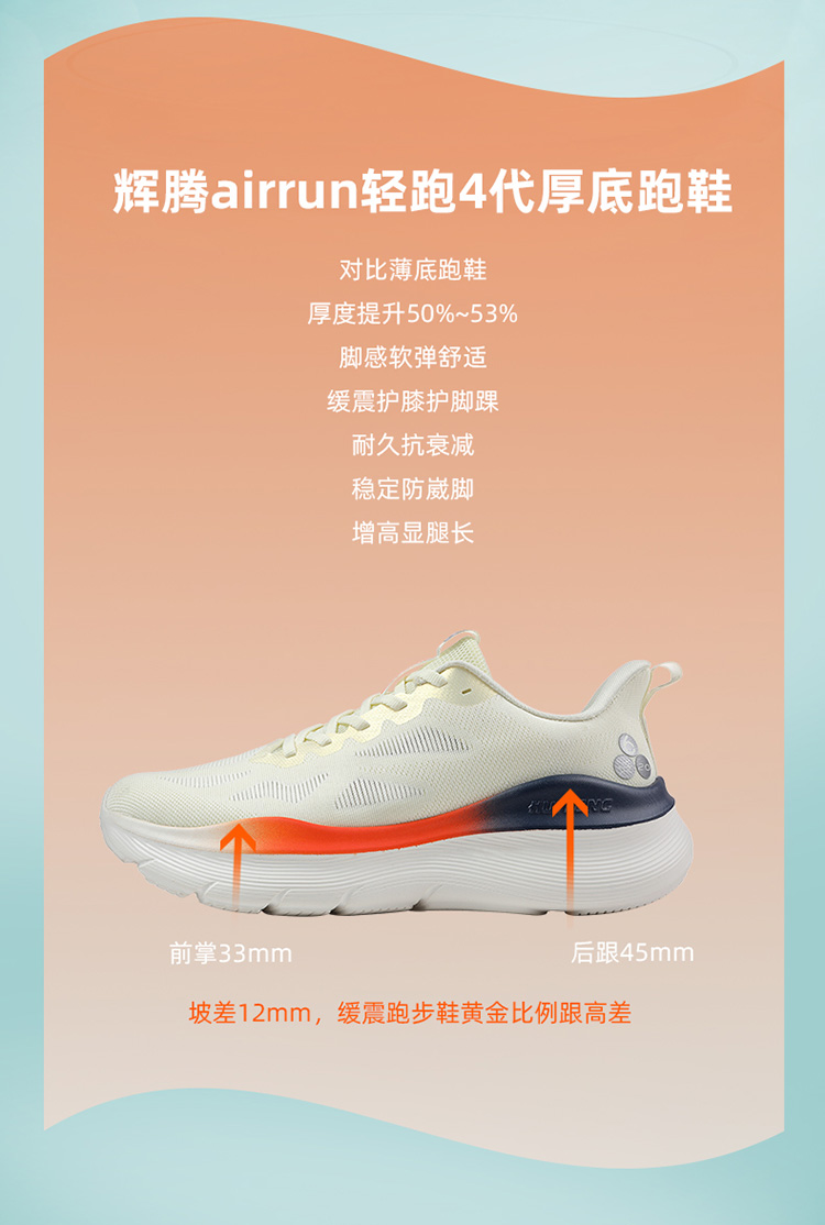 【HT8026】辉腾HUITENG AIRRUN轻跑4代云跑鞋 缓震回弹 透气 防滑耐磨