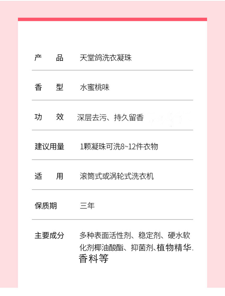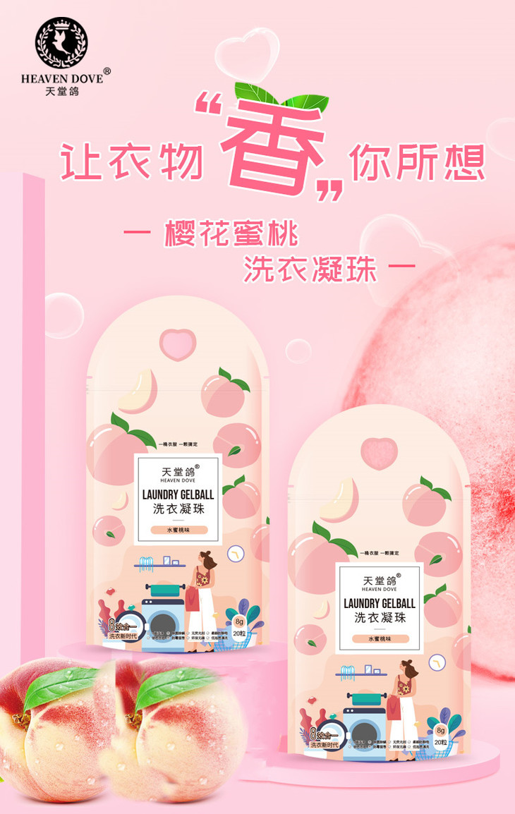 「拍1发3!3袋装」天堂鸽洗衣凝珠20颗*3袋装 水蜜桃香水型留香洗衣液去污清洁工具
