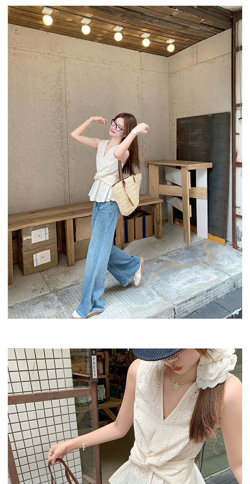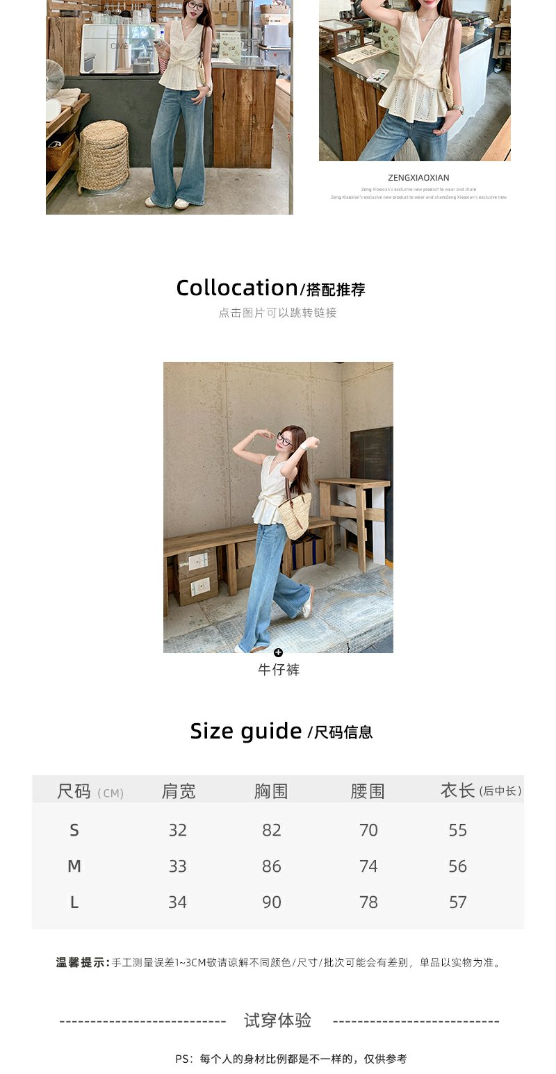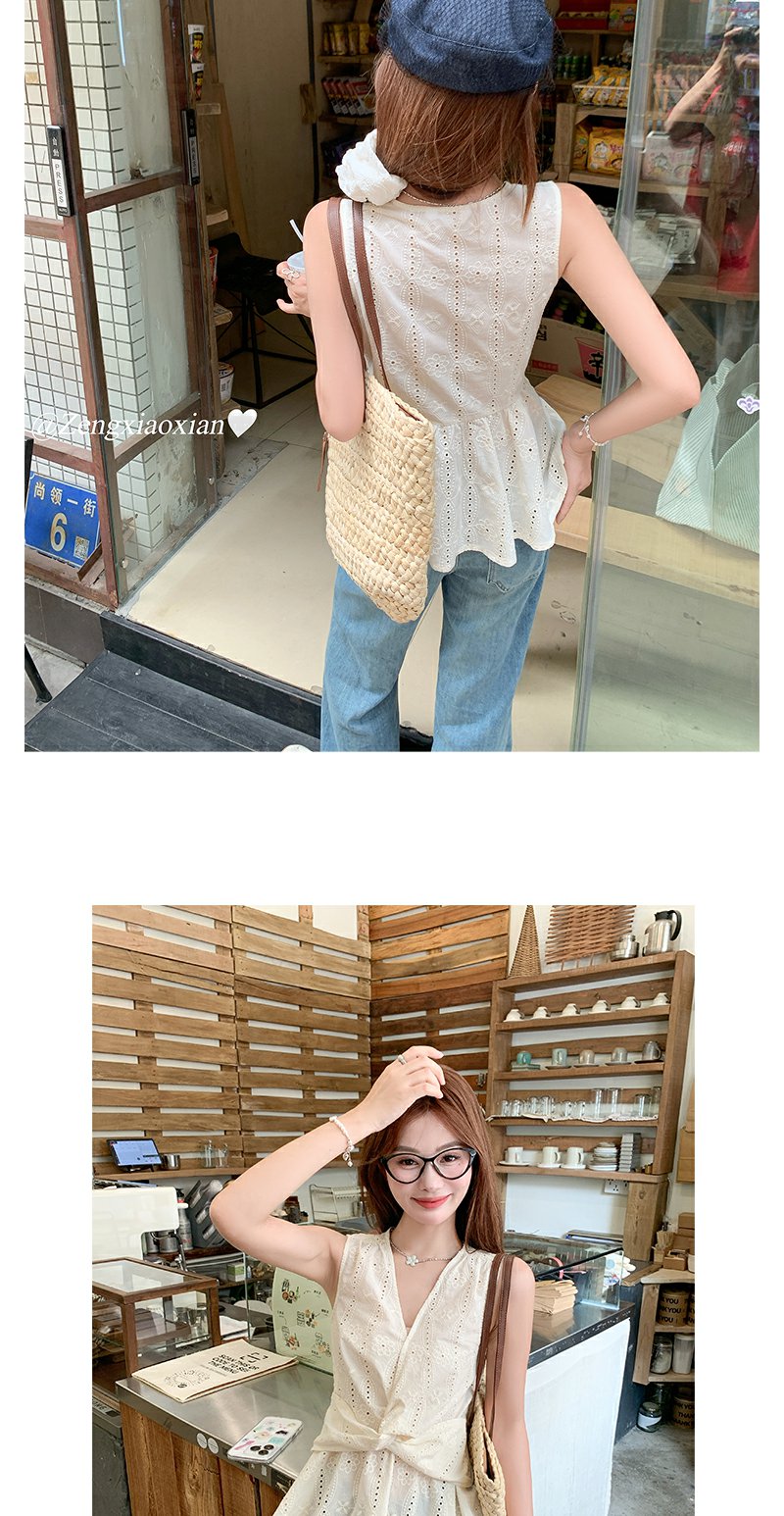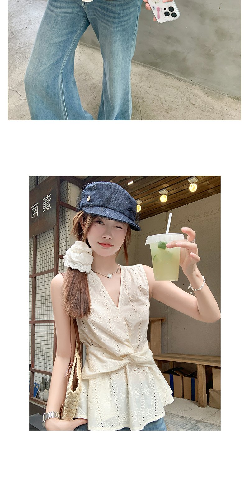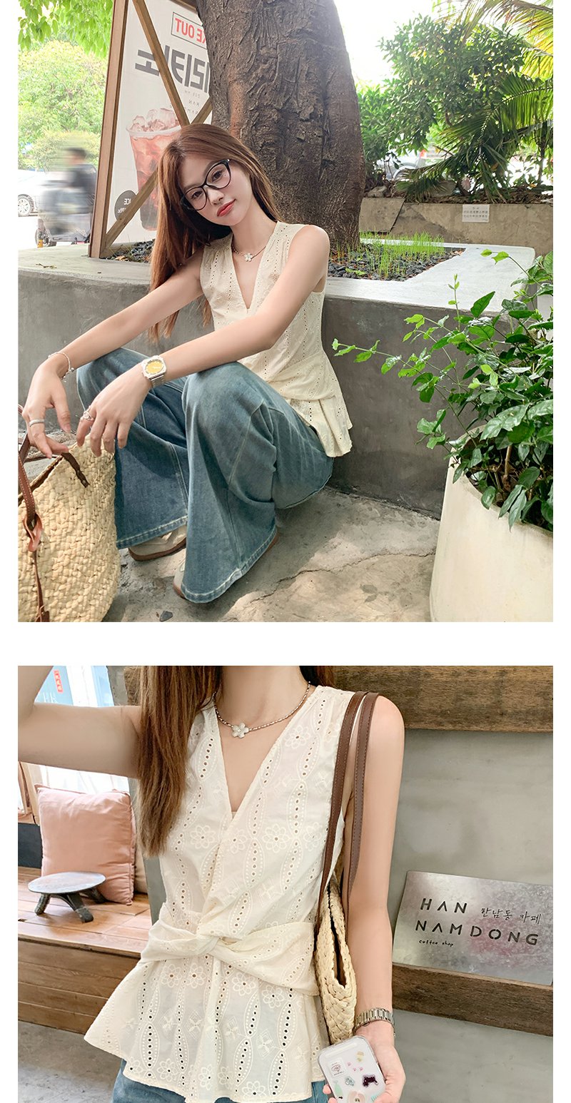 <曾小咸推荐>小众设计镂空V领扭结无袖背心小衫