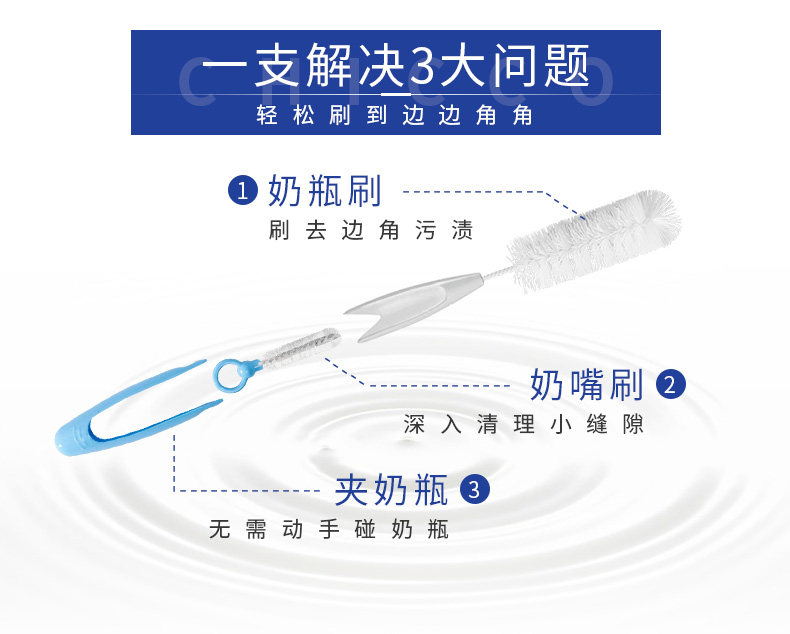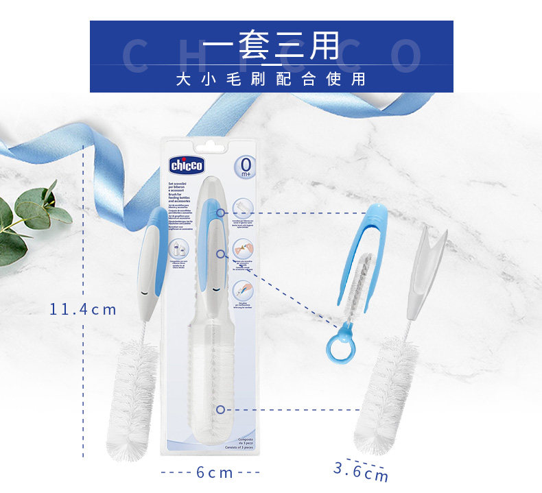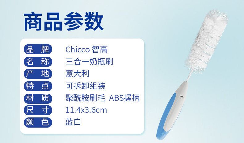 Chicco智高 三合一奶瓶清洁刷套装 洗奶瓶刷子奶嘴刷奶瓶夹