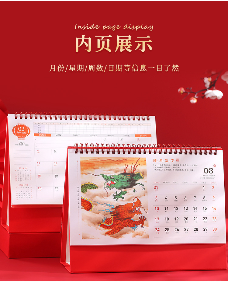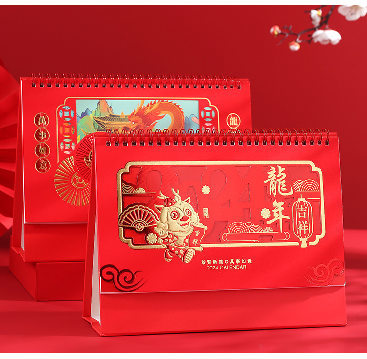 「数款可选!龙年透雕台历」2024台历龙年精美中国风立体透雕月历古典居家日用喜庆桌面摆件家居饰品新年台历