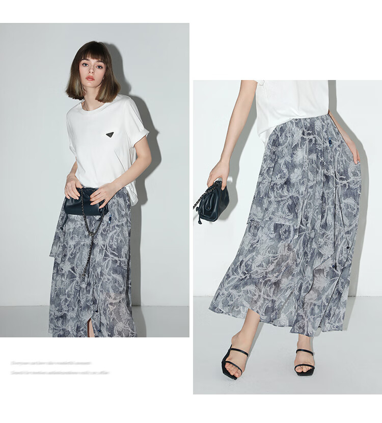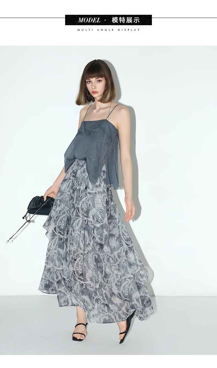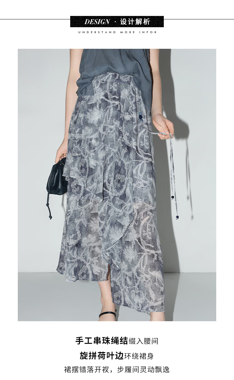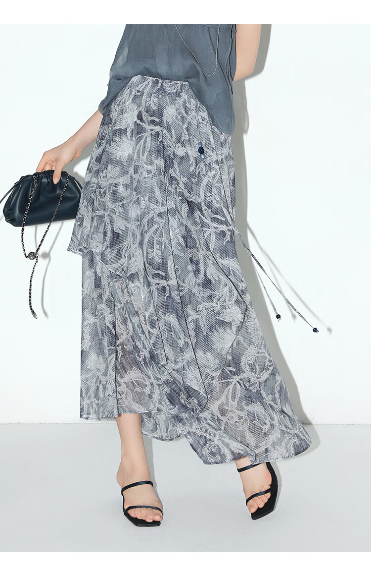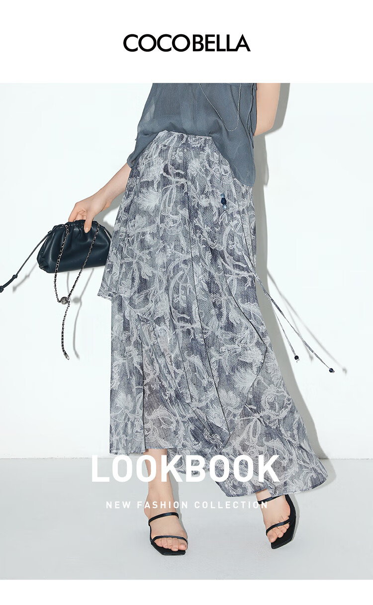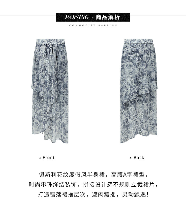 【限时秒杀】COCOBELLA佩斯利印花不规则飞片雪纺半身裙度假风长裙HS0037