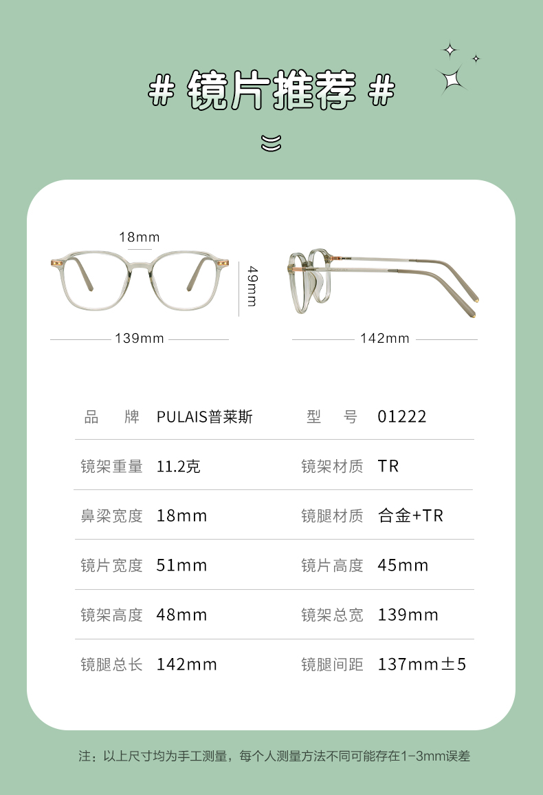 普莱斯光学镜架 01222 沁新减龄颜值加分 TR+合金 四色可选