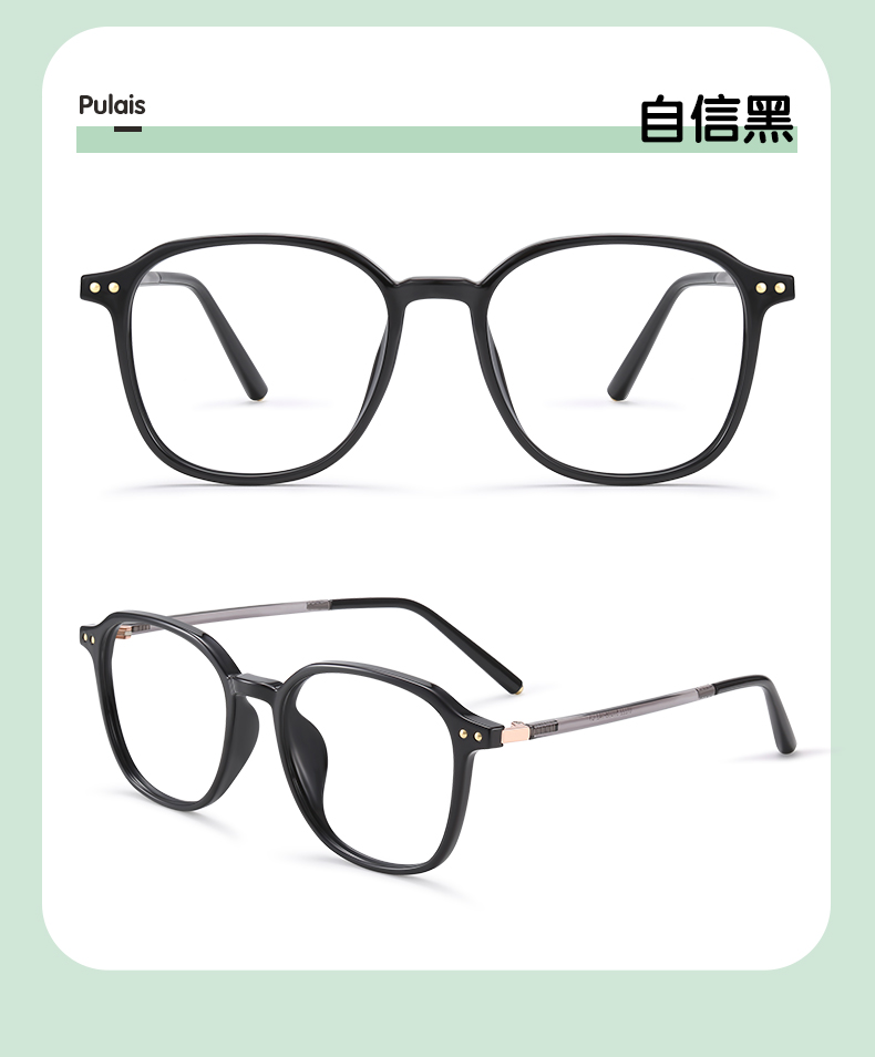 普莱斯光学镜框B8567 经典全框 半钛材质 舒适鼻托 稳固桩头 复古休闲 三色可选