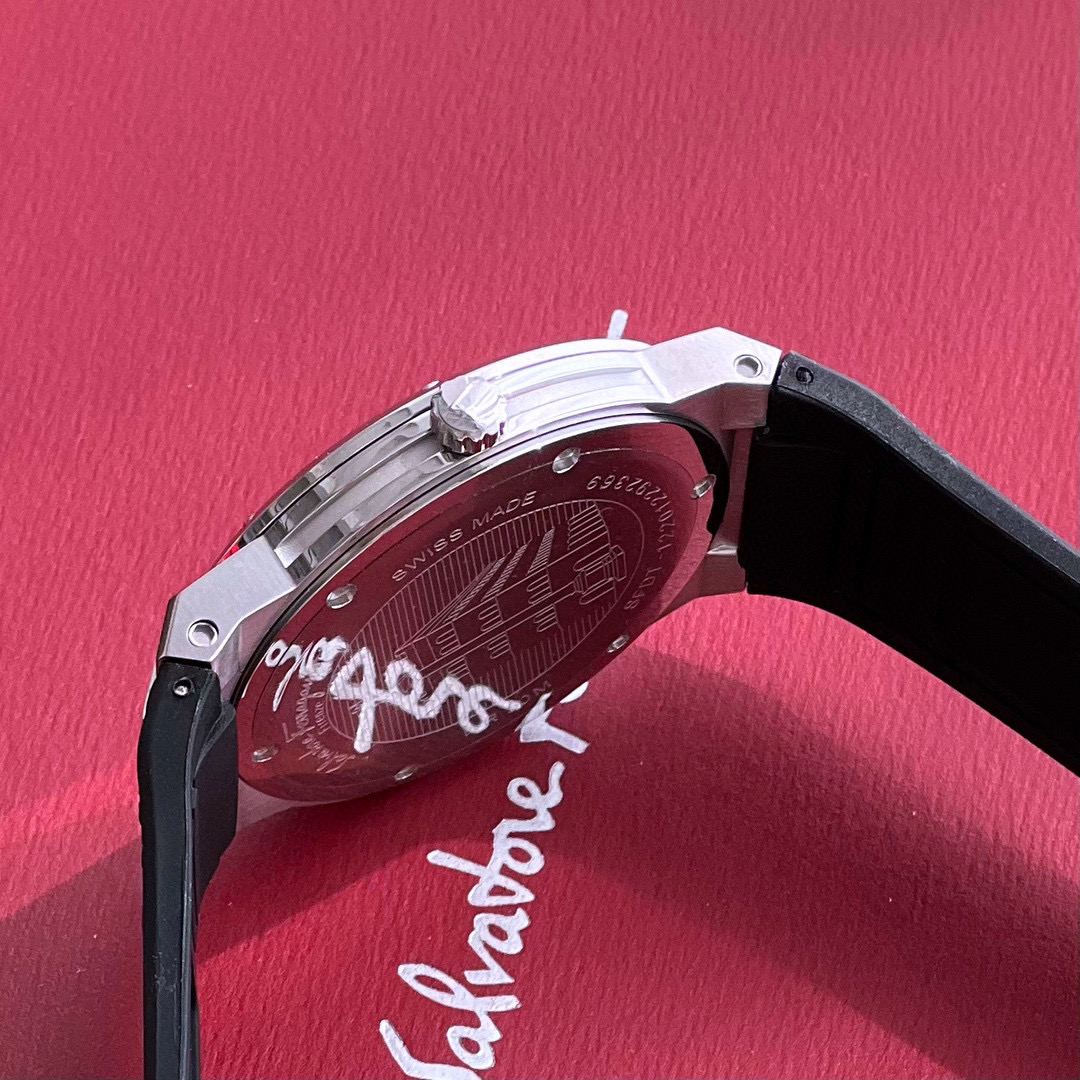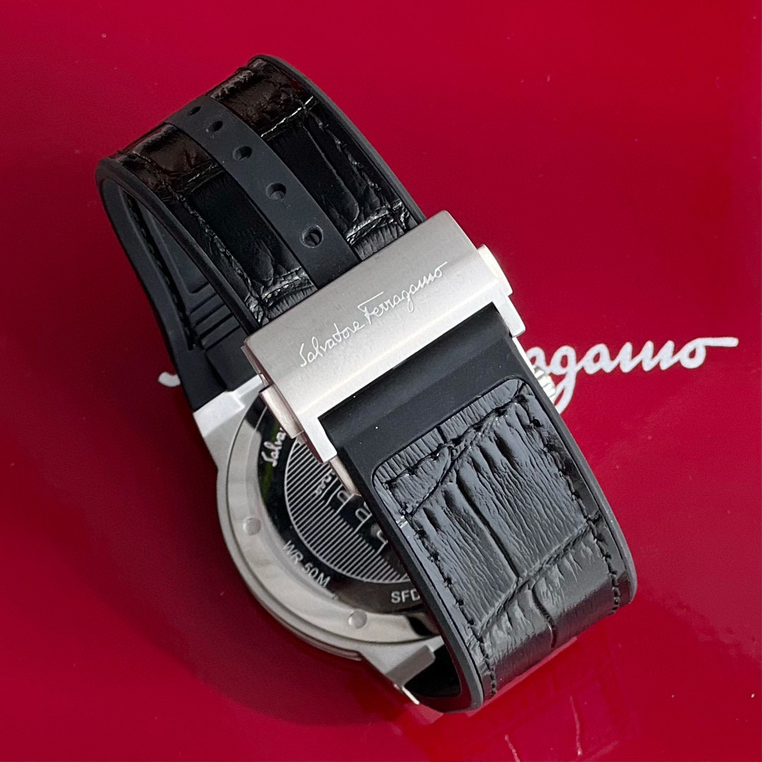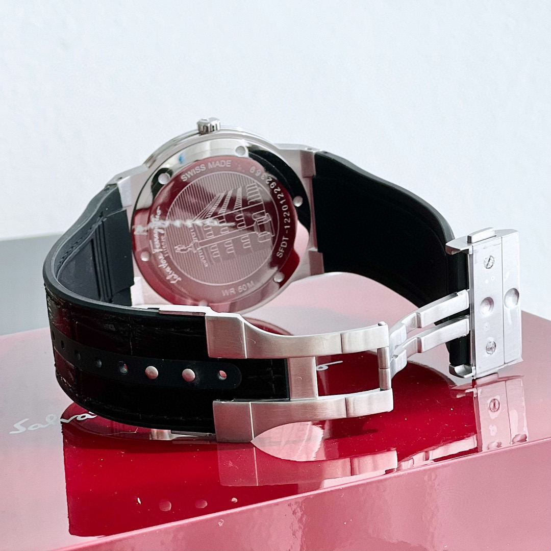 新款首发!外贸出口订单,Ferragmo F-80 Slim系列,简约优雅时尚男表;表径:41mm,采用纤薄的表壳,运动的气质;鳄鱼纹蛇纹小牛皮搭配橡胶表带,运动与优雅联合,彰显匠心精工品质,防水防汗佩戴舒适;简约太阳纹盘面,经典大气三针设计,立体时标Logo增添视觉层次感,硬朗螺钉精钢表壳,拉丝工艺,搭配齿轮F浮雕表冠,突显现代都市型男格调;底盖镌刻Ferragamo总部斯皮尼图案。蓝宝石水晶镜面;瑞士石英机芯,性能稳定,走时精准,50米防水,配原盒包装一手好价!