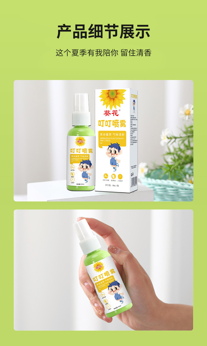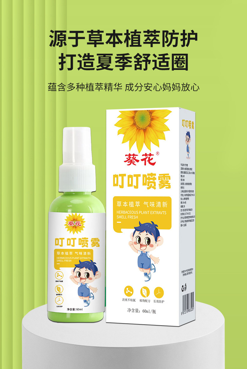 葵花叮叮喷雾 儿童叮咬夏季便携防舒止缓痒消包艾草花露水喷雾