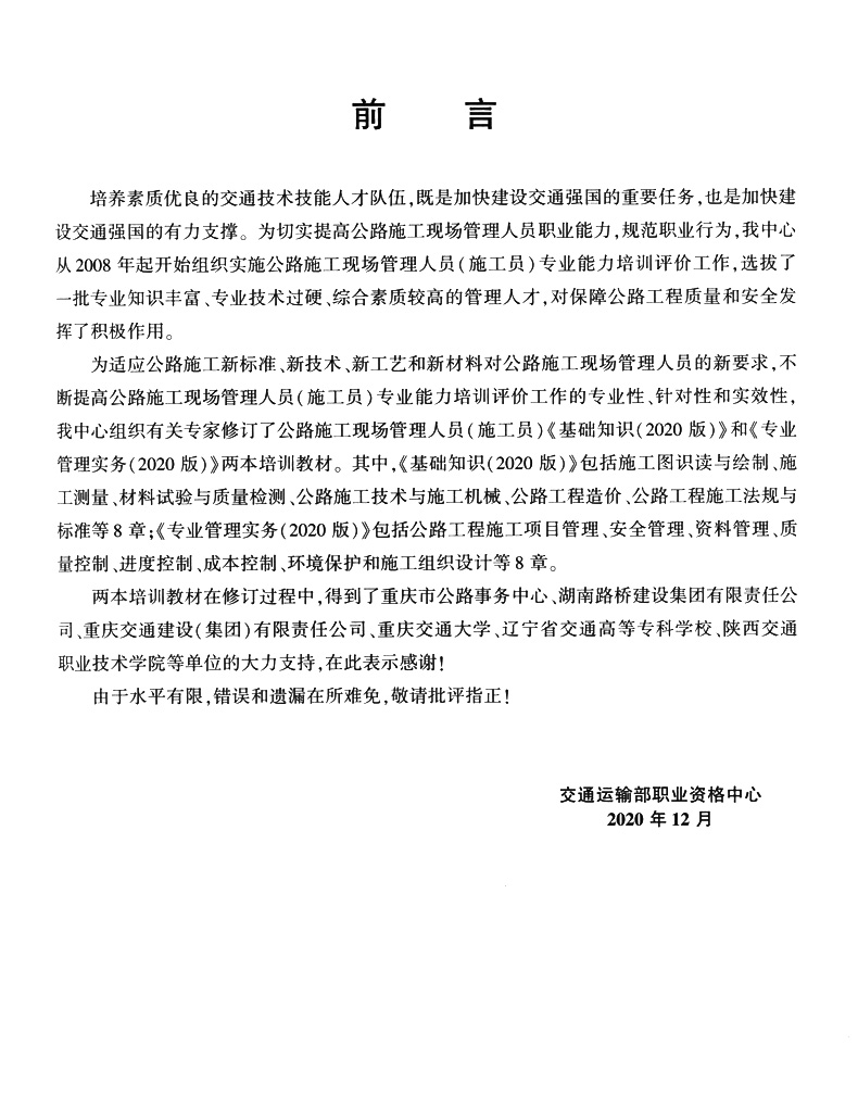 书名:公路施工现场管理人员——施工员(专业管理实务)(2020版)
