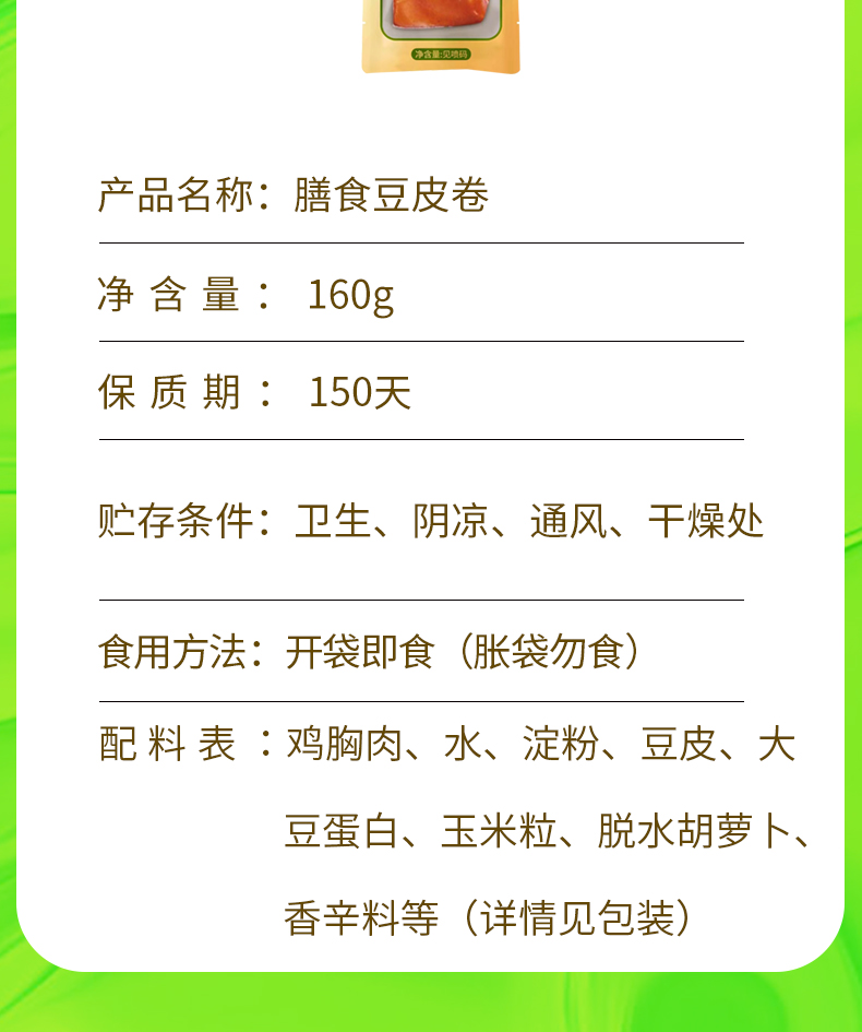 【直发】哈尔香膳食豆皮卷160g*5袋