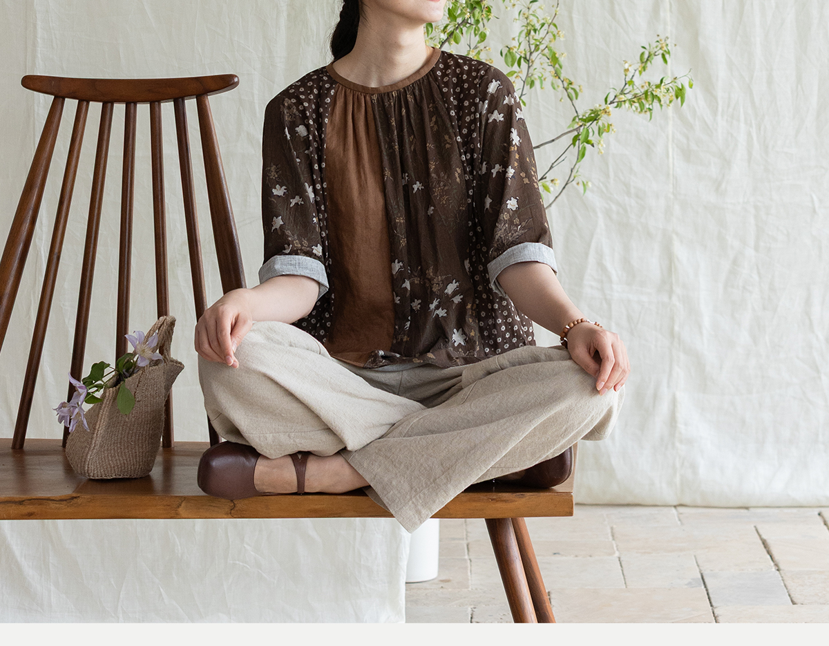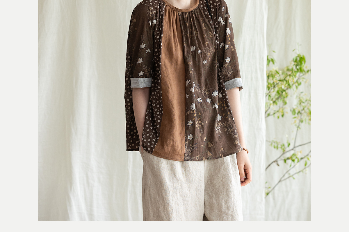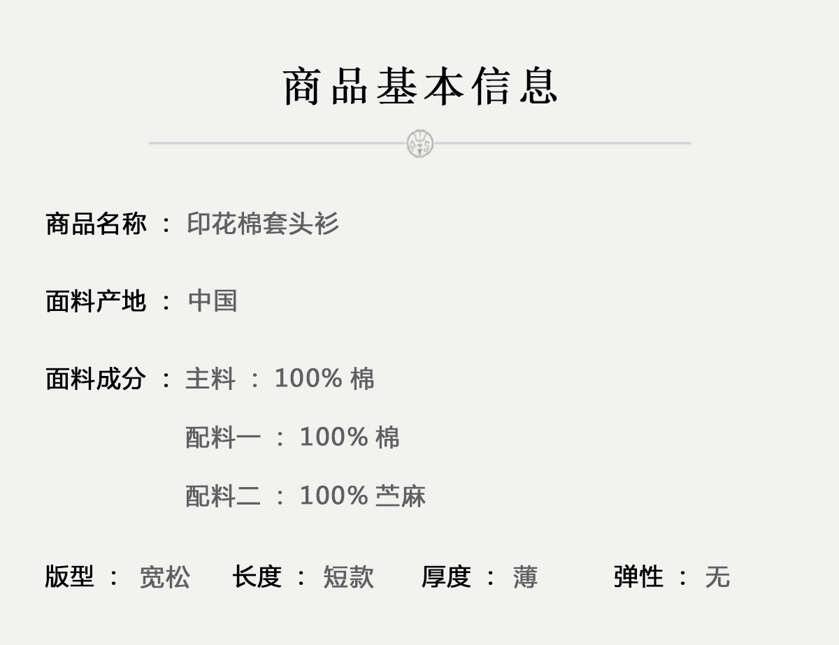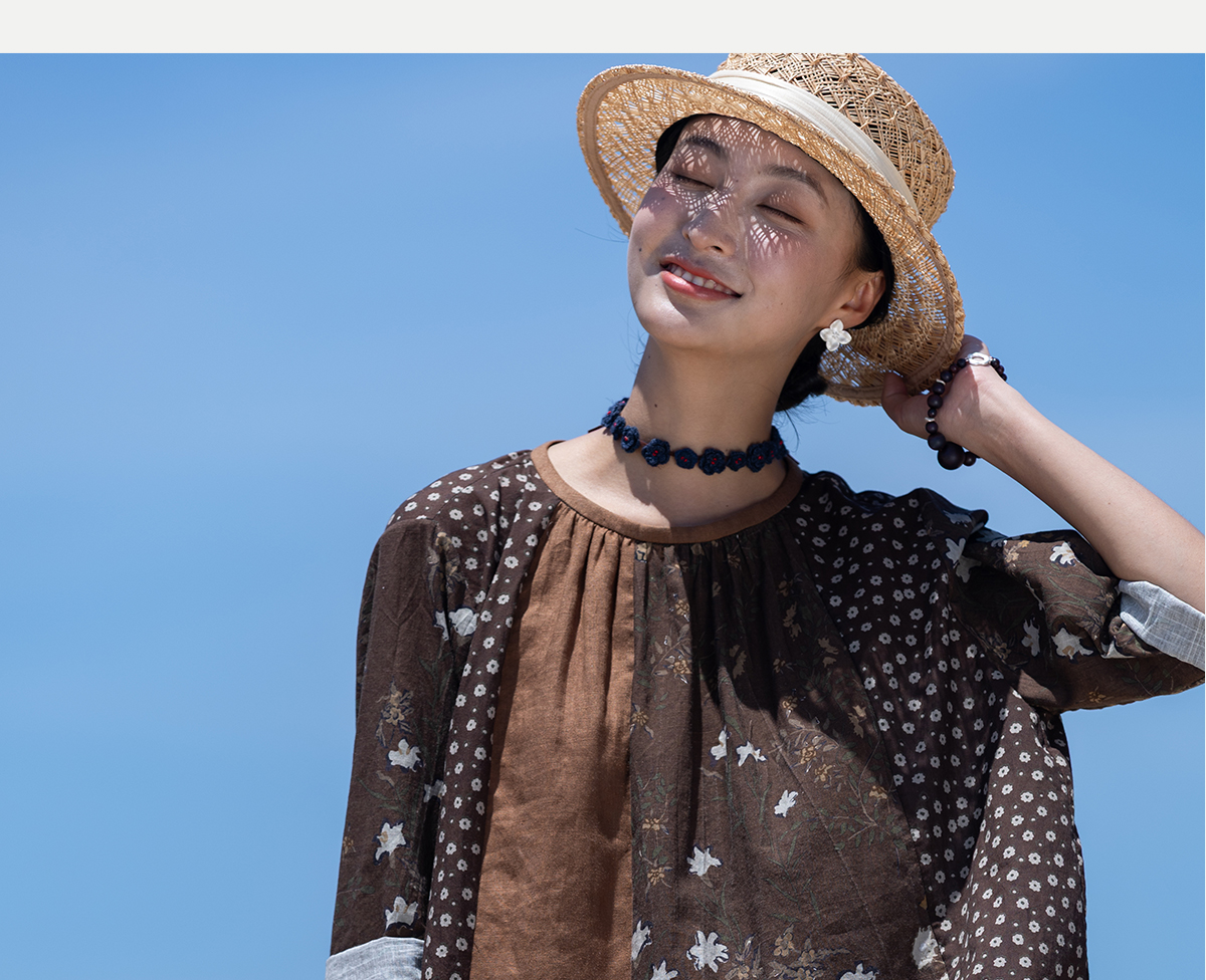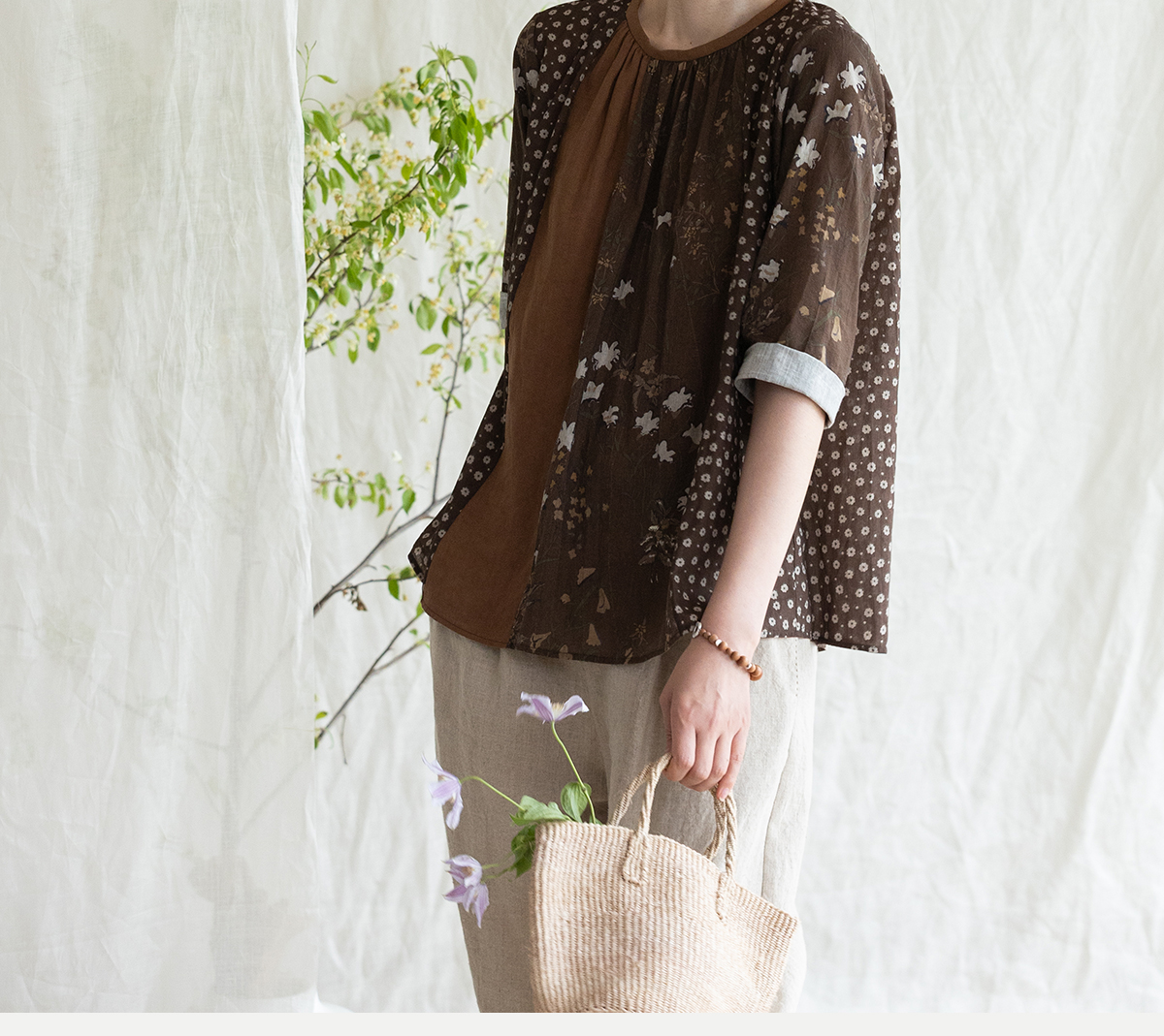 牧衣游原创 印花30支新疆棉套头衫通勤显瘦古朴文艺气质上衣 浅叙