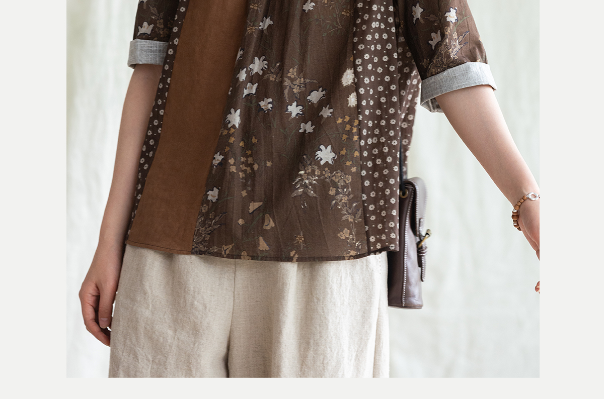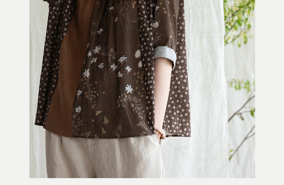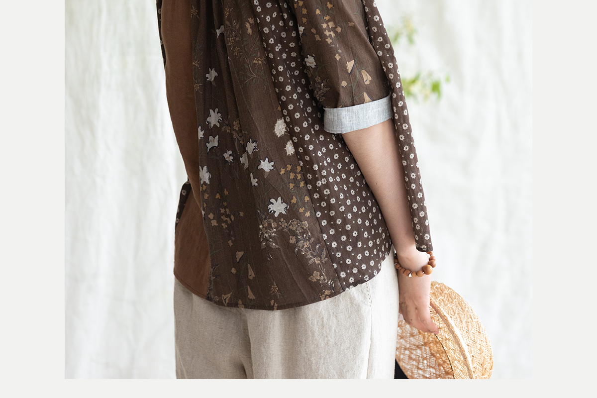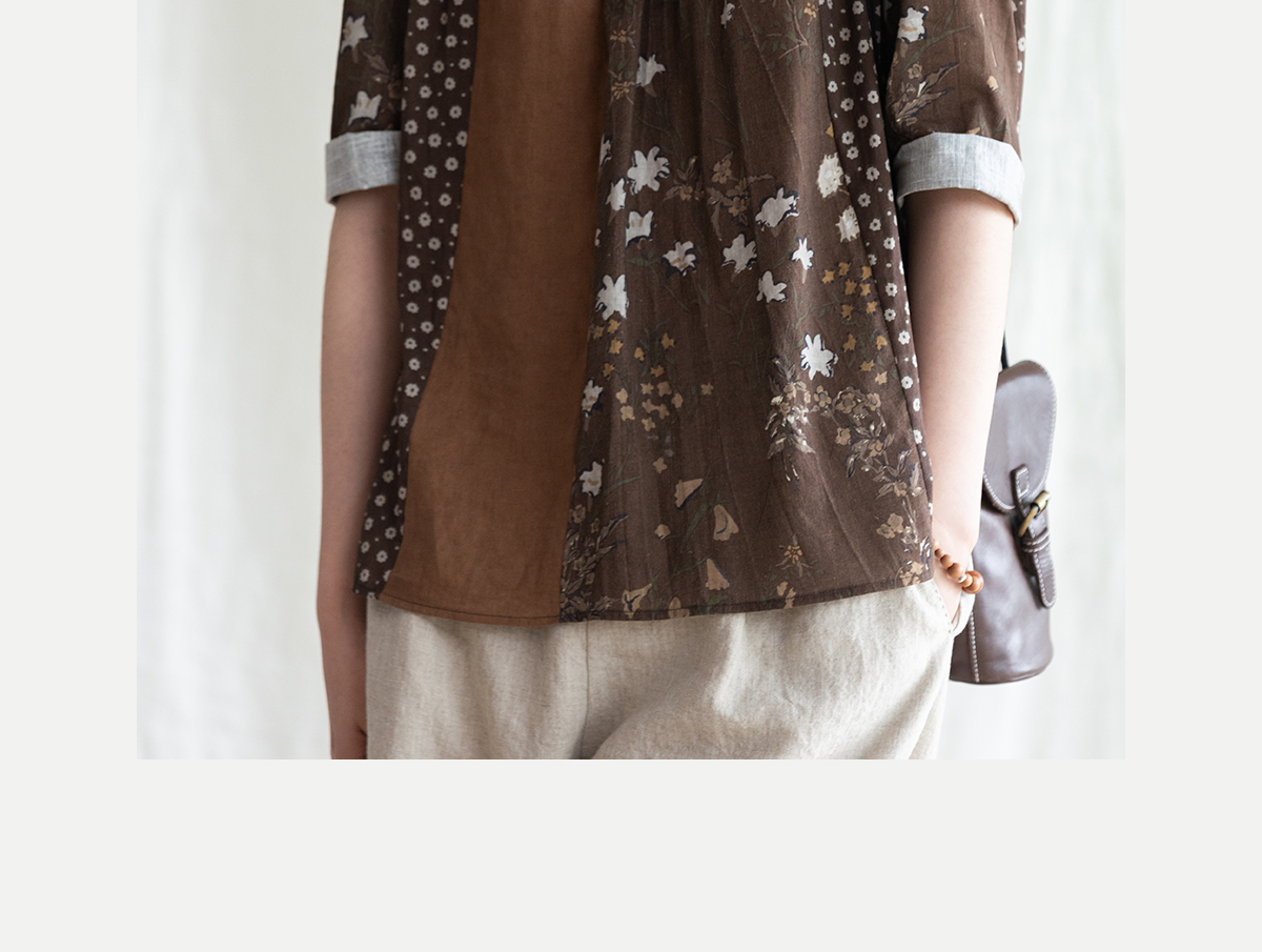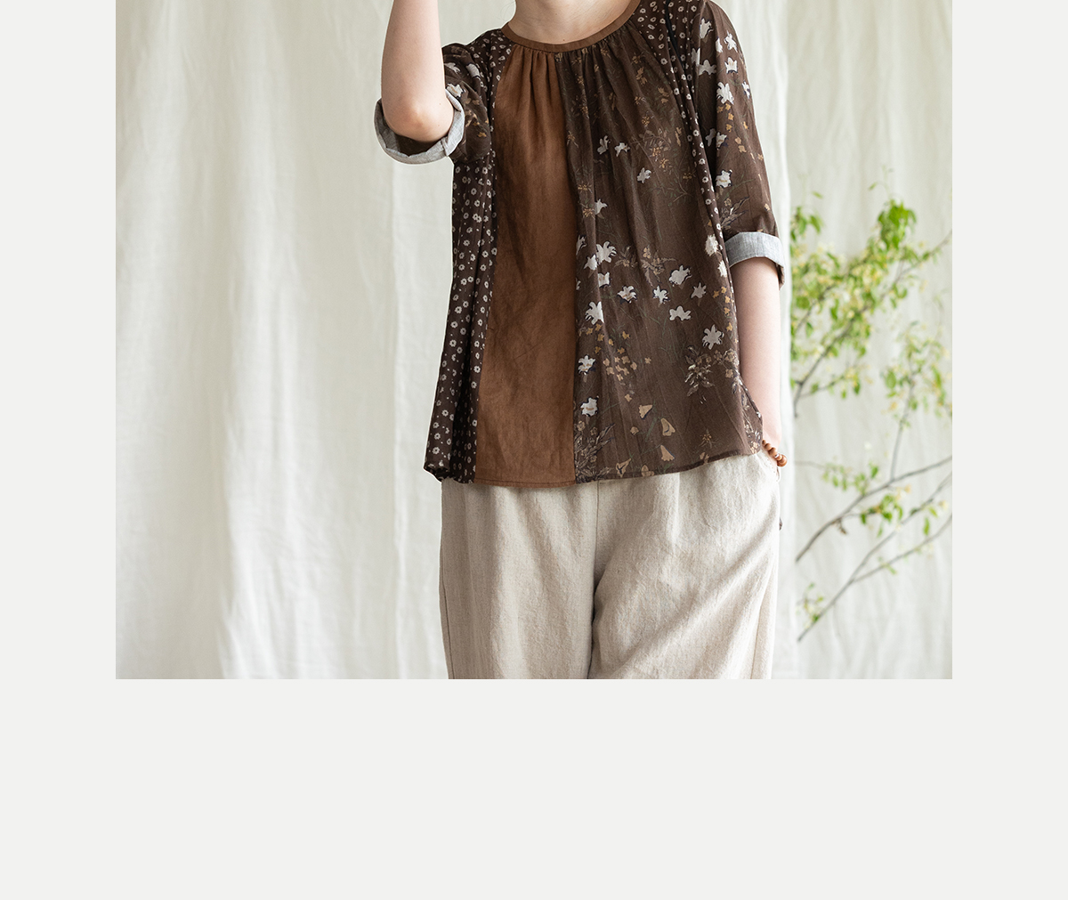 牧衣游原创 印花30支新疆棉套头衫通勤显瘦古朴文艺气质上衣 浅叙