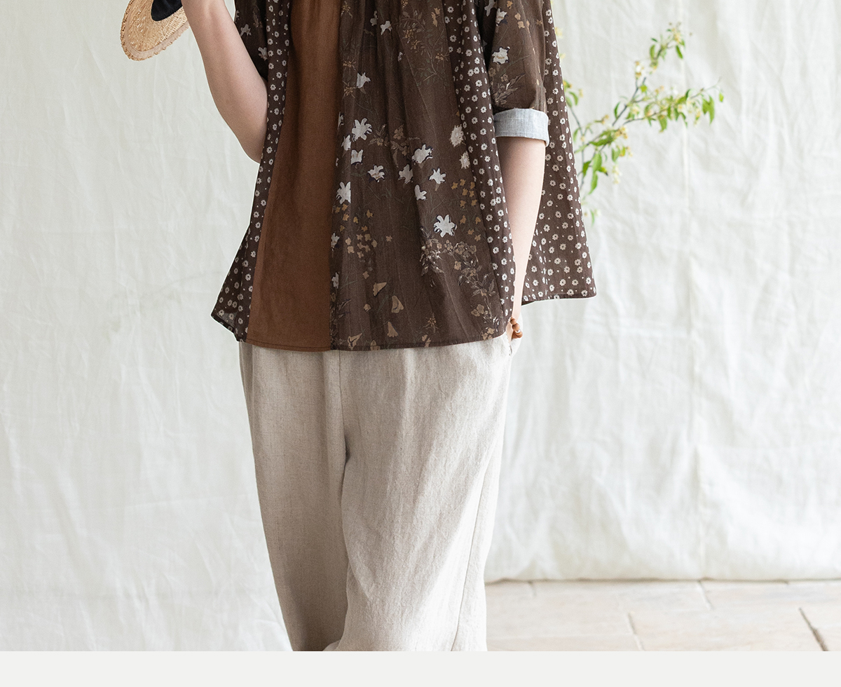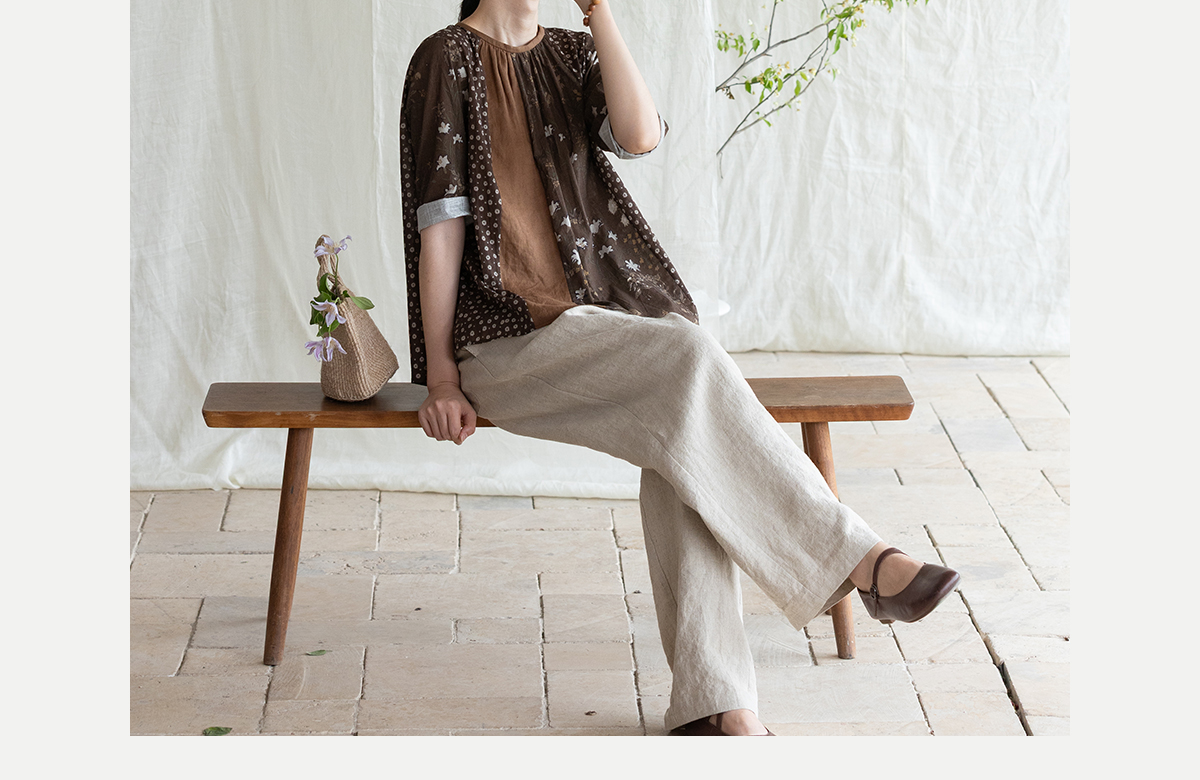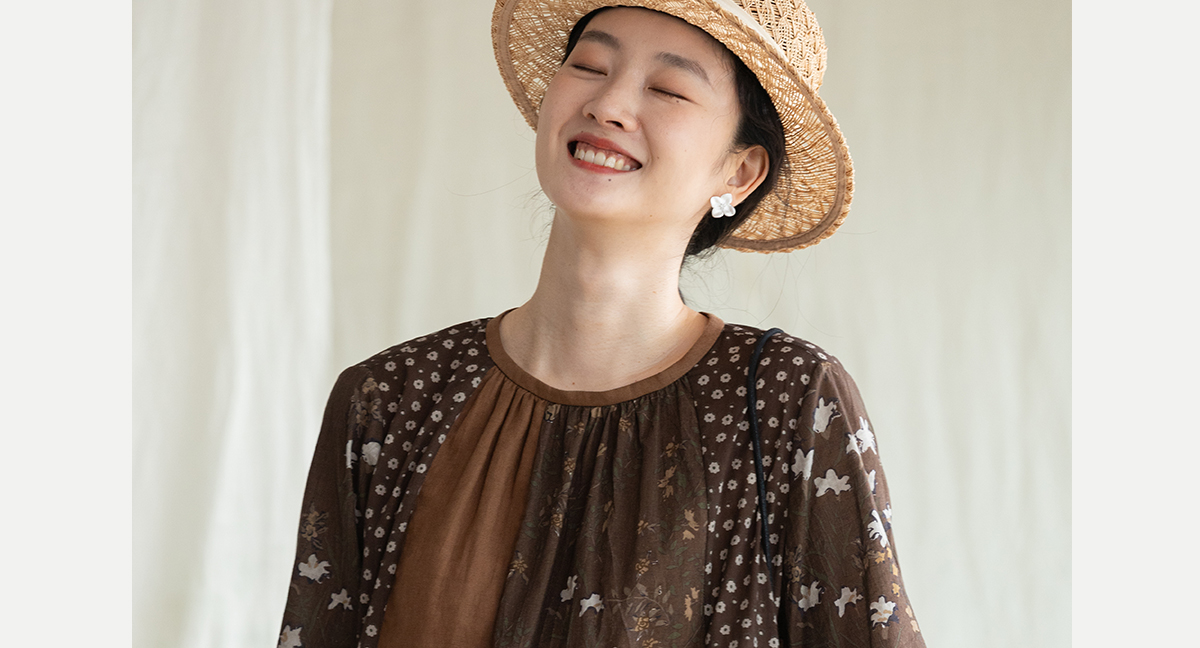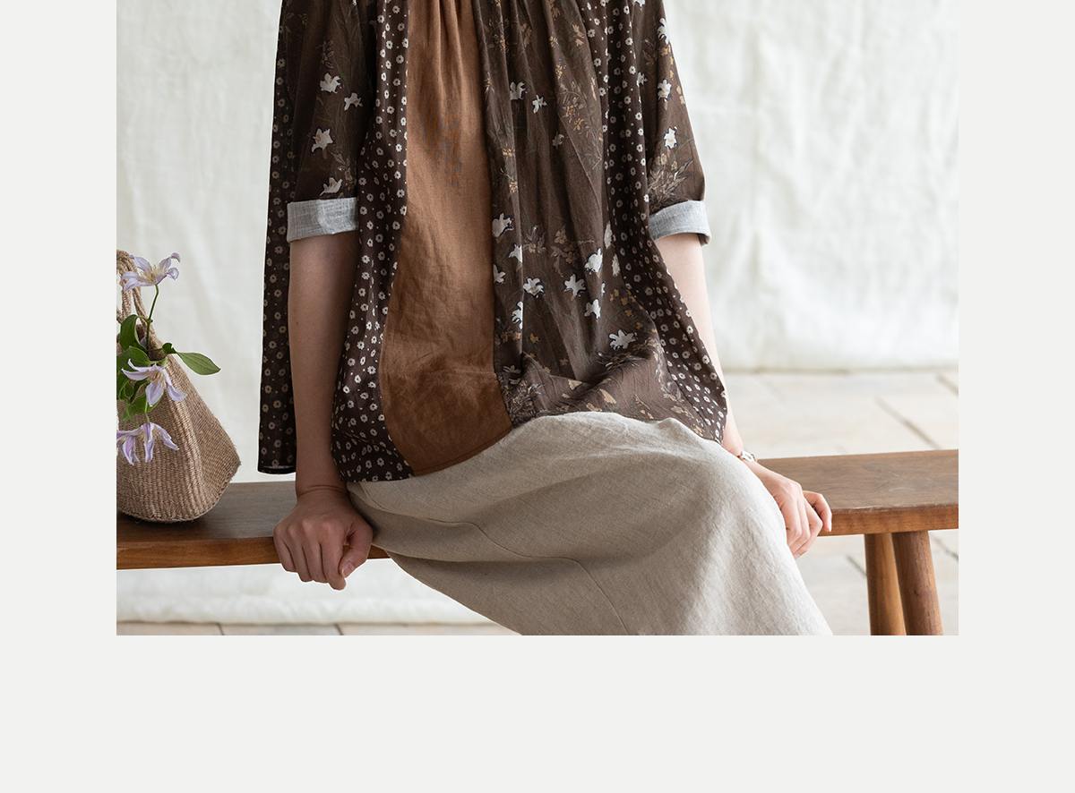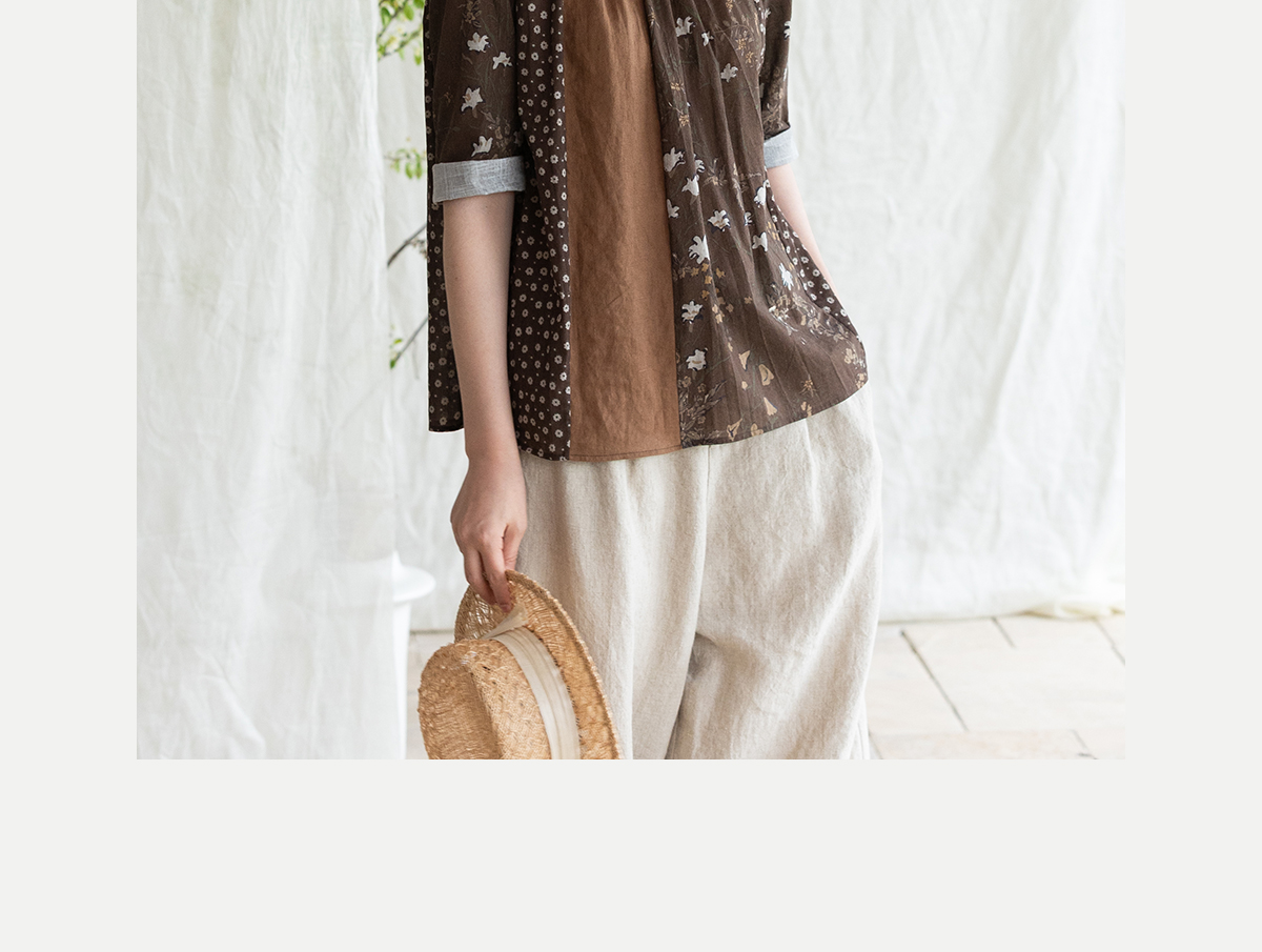 牧衣游原创 印花30支新疆棉套头衫通勤显瘦古朴文艺气质上衣 浅叙