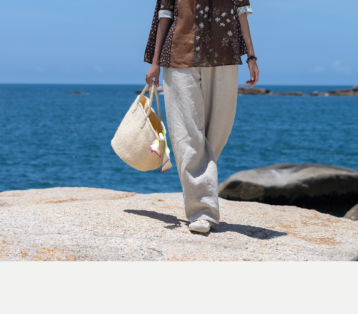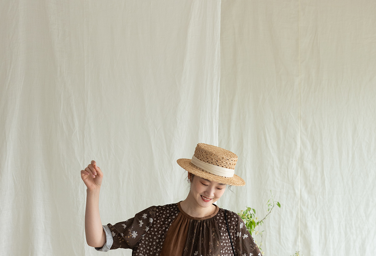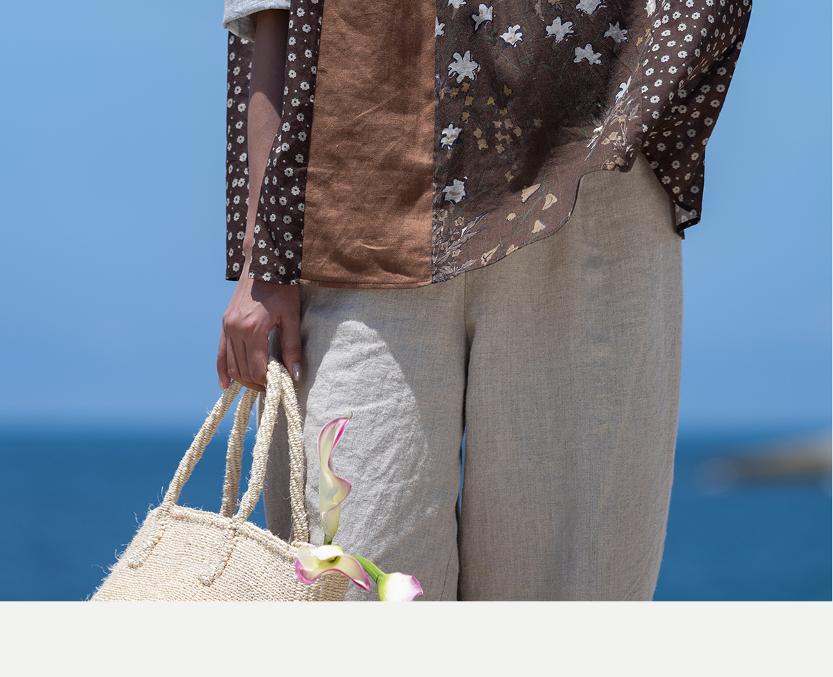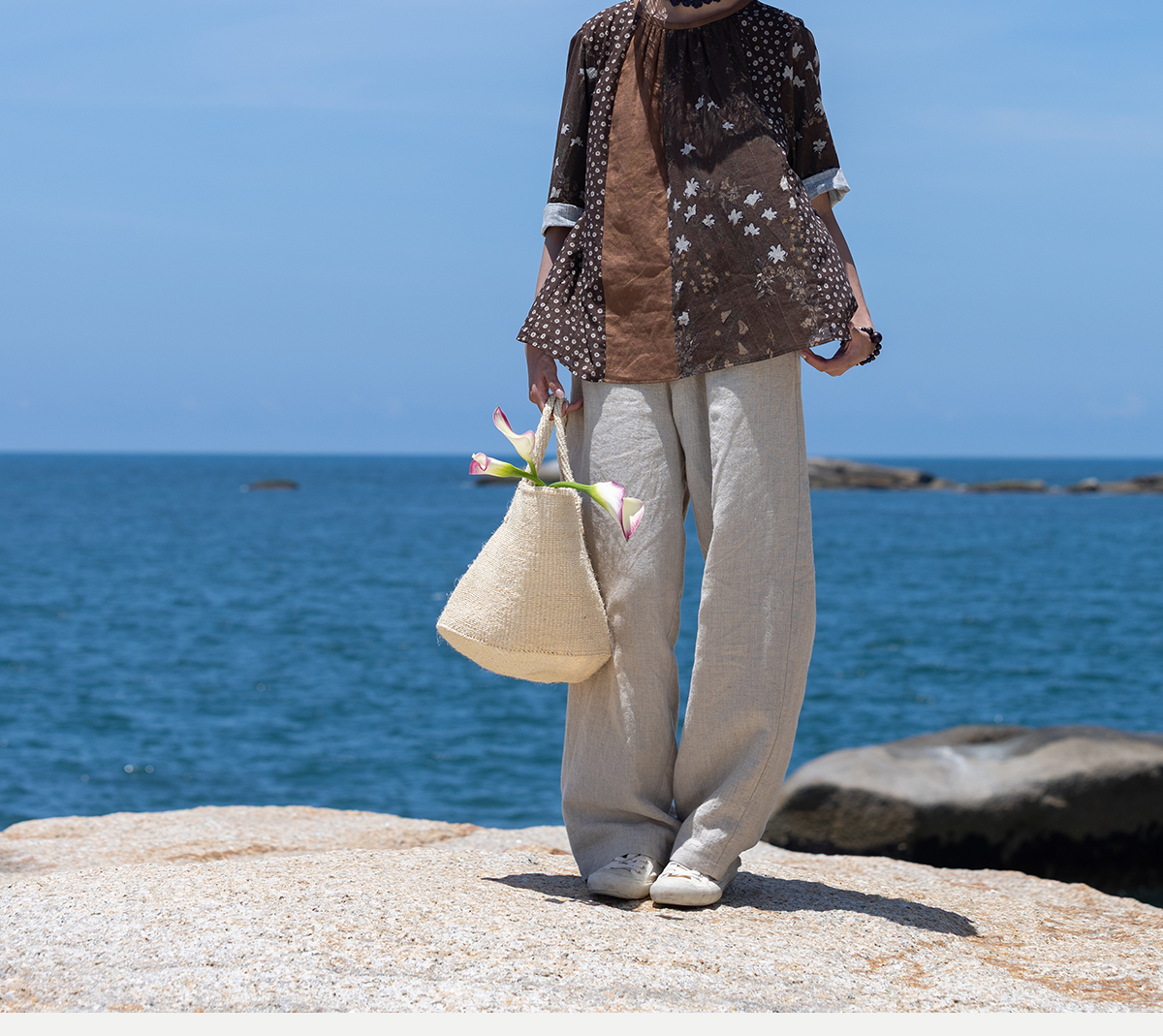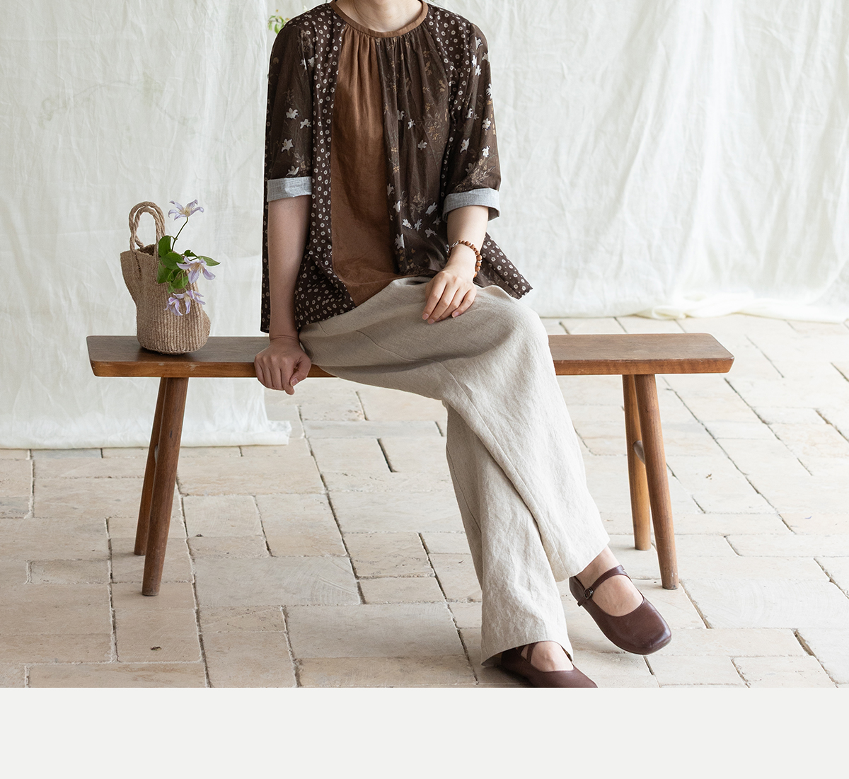 牧衣游原创 印花30支新疆棉套头衫通勤显瘦古朴文艺气质上衣 浅叙
