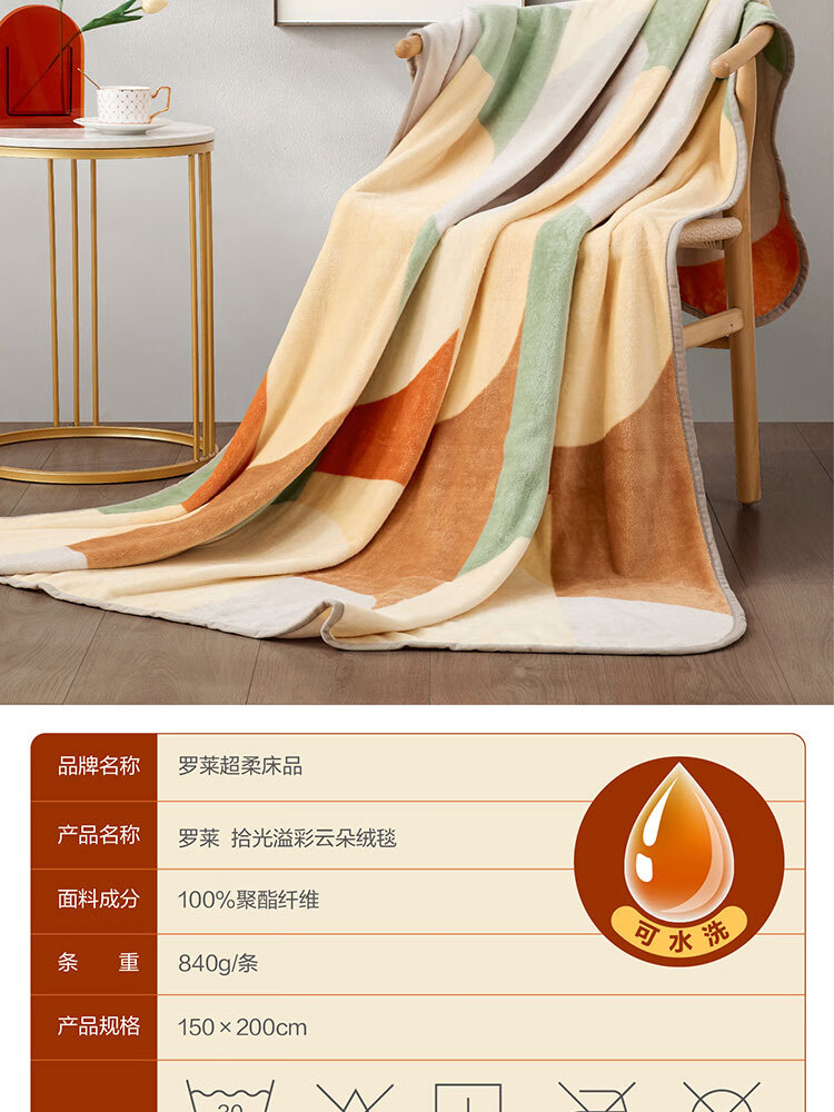 【多样屋专柜】罗莱 拾光溢彩云朵绒毯150*200cm,840G