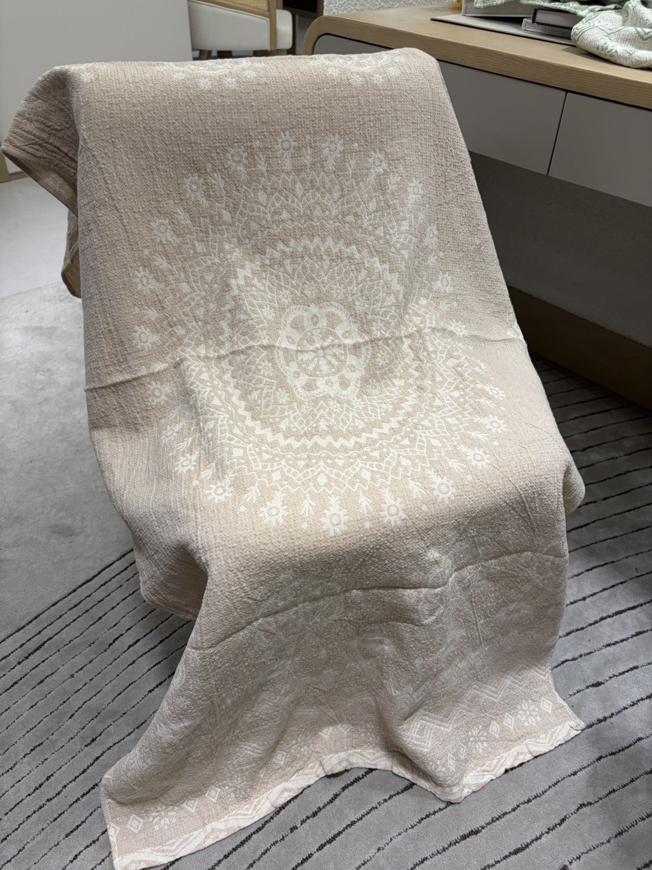 多层纱纯棉浴巾 面料自带的肌理感呈现慵懒随性 多功能,可用作盖毯,沙发巾 车载毯,午休毯,浴巾 夏被等等,用途多多,柔软与舒适兼得