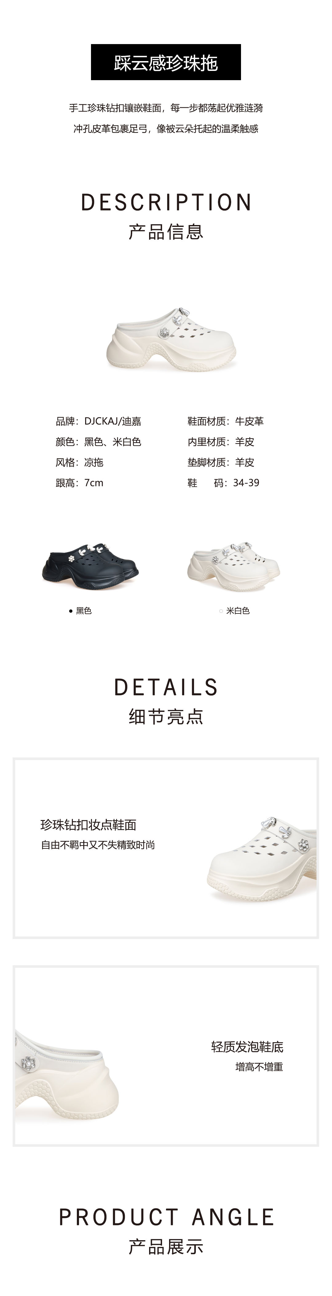 豪麟名鞋奥莱迪嘉女鞋凉拖牛皮革DJHJO51WL212黑色 原价1660元