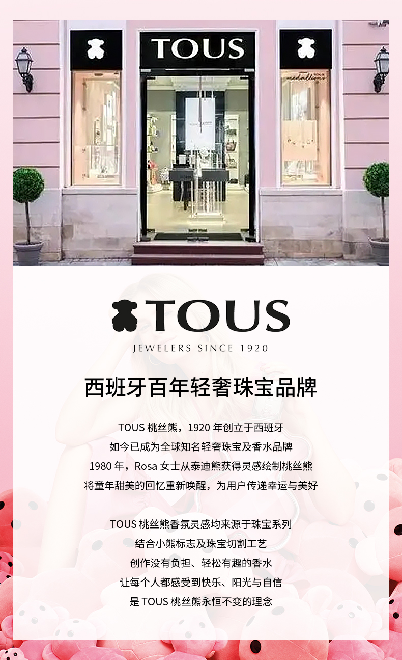 【商品名称】Tous桃丝熊粉红宝贝香水EDC古龙水花香麝香调100ML
