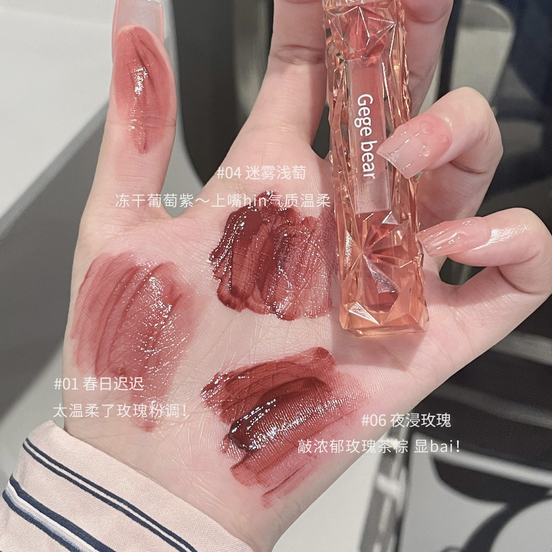 「9.9元包邮!数色可选」Gege bear戈戈小熊晶透钻光镜面唇釉不掉色不易沾杯口红秋冬美妆
