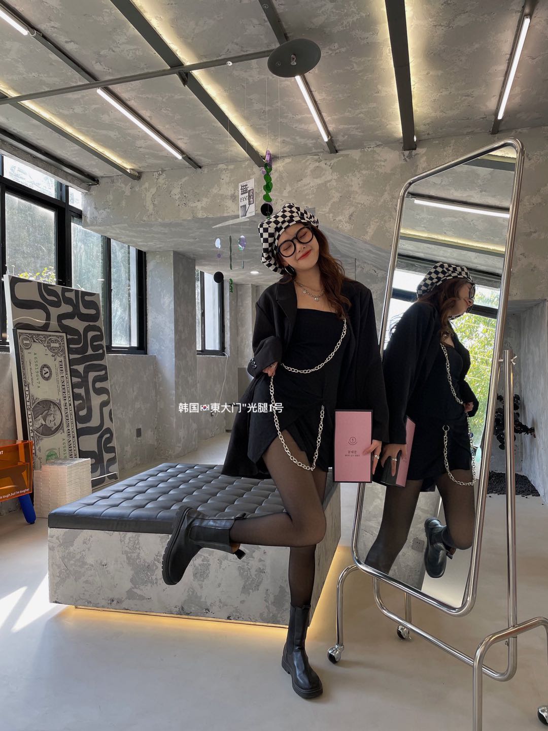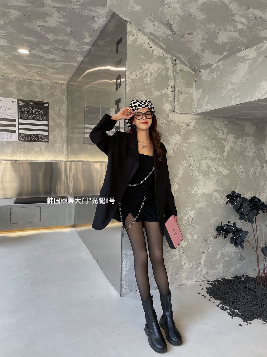 搭配短靴+短款外套 /短裙/长卫衣短裤
