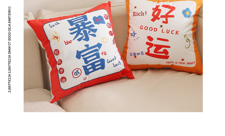 「数款可选!国潮来袭」新款毛绒国潮文字抱枕 家居装饰沙发抱枕发财暴富新年抱枕套居家布艺