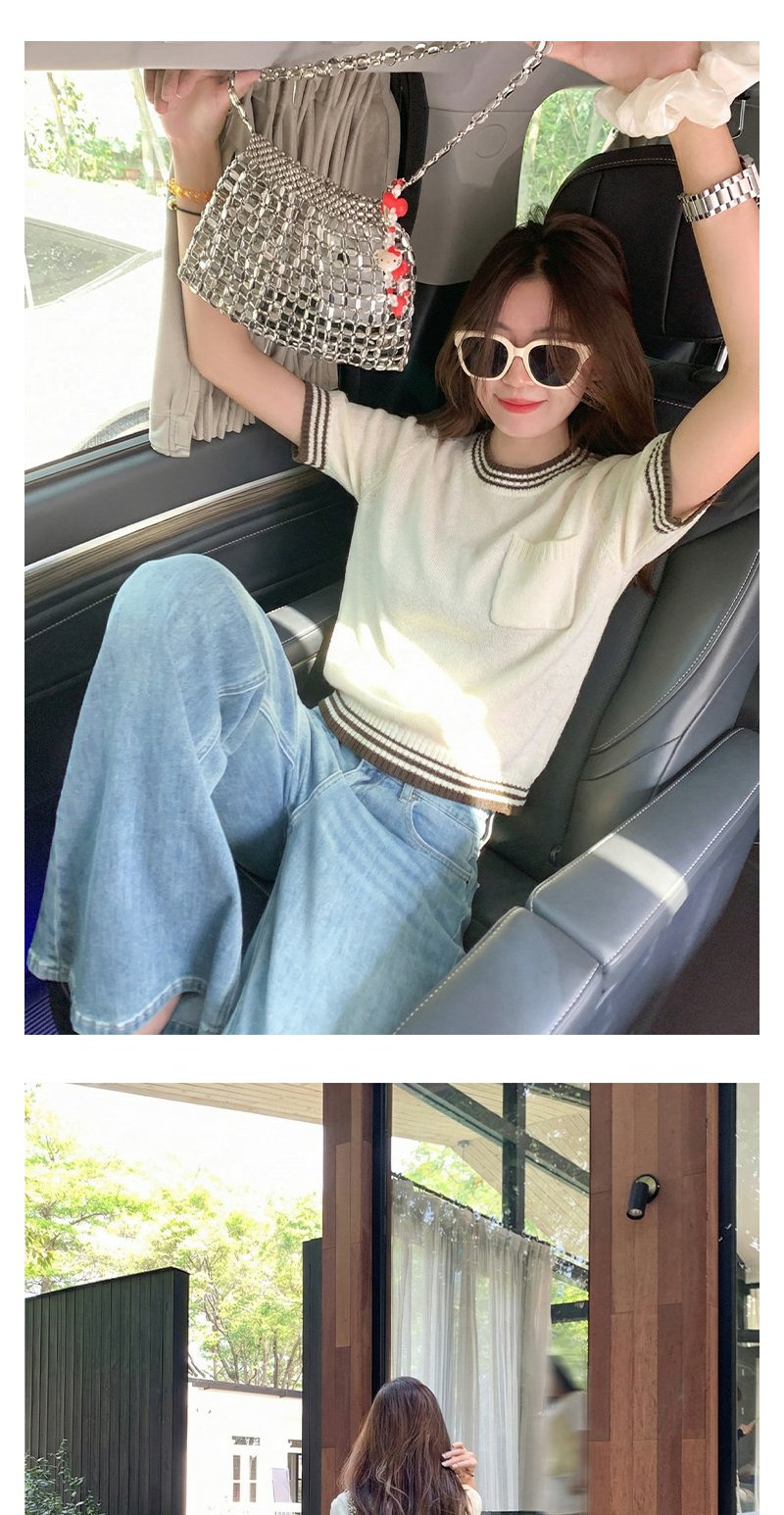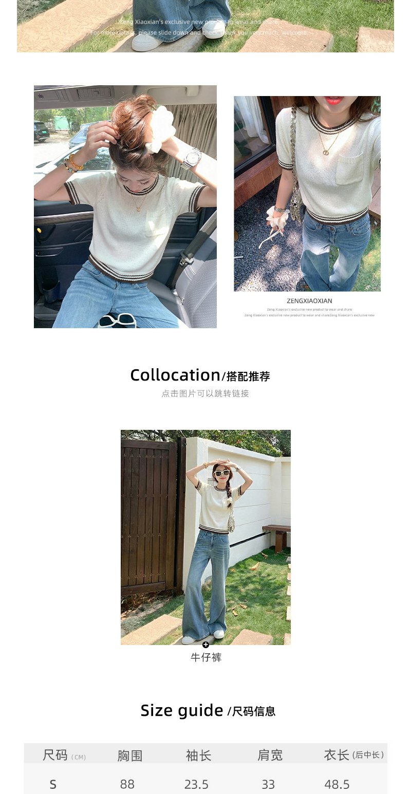 <曾小咸推荐>4.8现货秒杀 !微信超特价!韩系撞色针织短袖衫 日常129.99 立减70 秒杀59.99!!