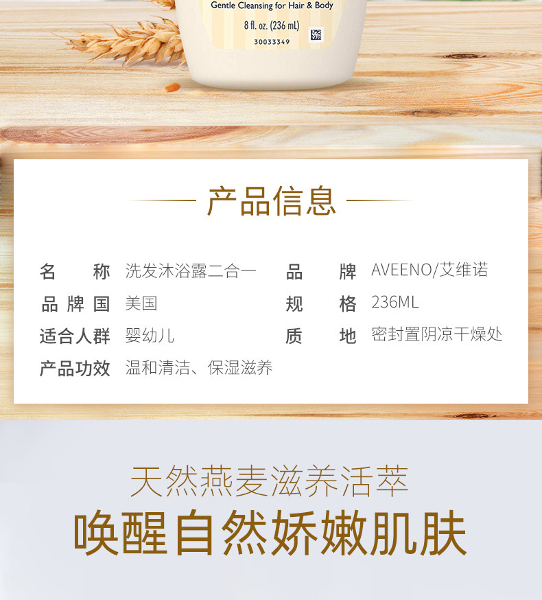 Aveeno艾维诺 天然燕麦洗发沐浴露二合一 236ML 美国