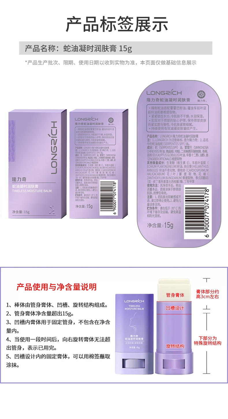 隆力奇蛇油凝时润肤膏淡化颈纹提拉紧致护理天鹅颈霜透亮抗皱【直播专属】