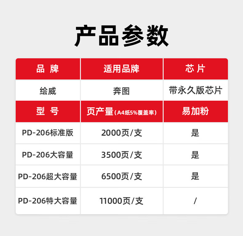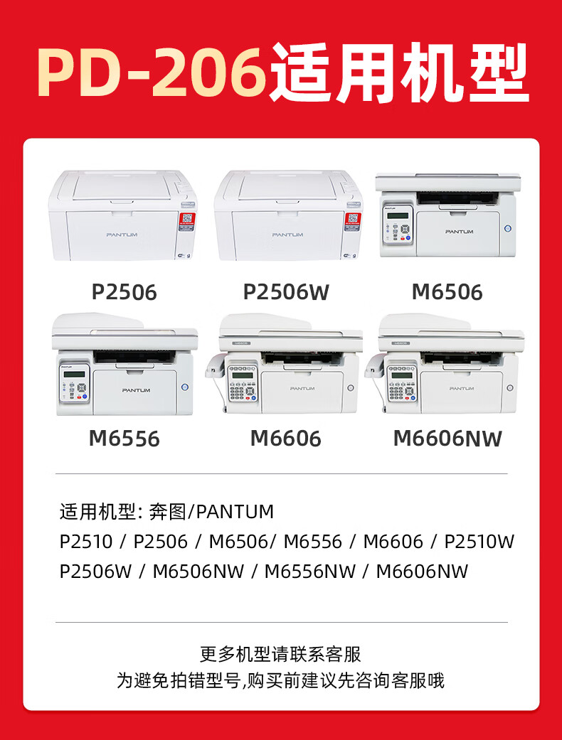 绘威PD-206易加粉硒鼓 适用奔图PANTUM P2506/W M6506N/NW 粉盒M6556 M6556N/NW M6606N P2510墨盒奔腾打印机