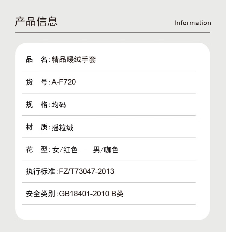 艾丝雅兰 A-F720 精品暖绒手套