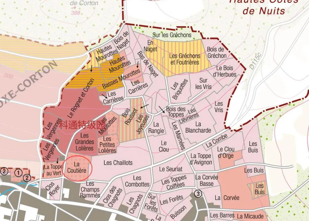 这个斜坡和科通特级园是在同一个山坡,这款酒所在地块位于著名的科通特级园 “Grandes Lolières”下方。