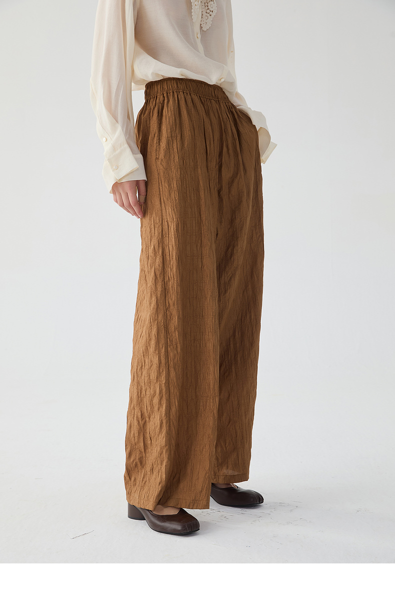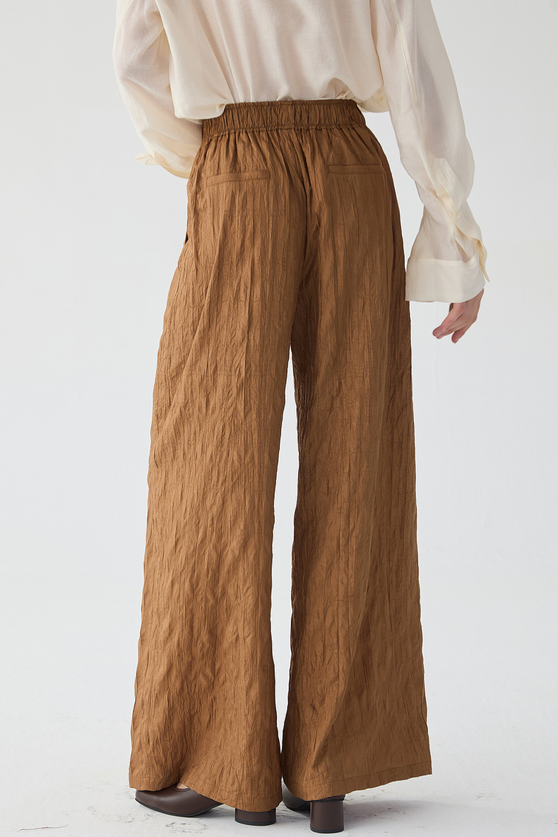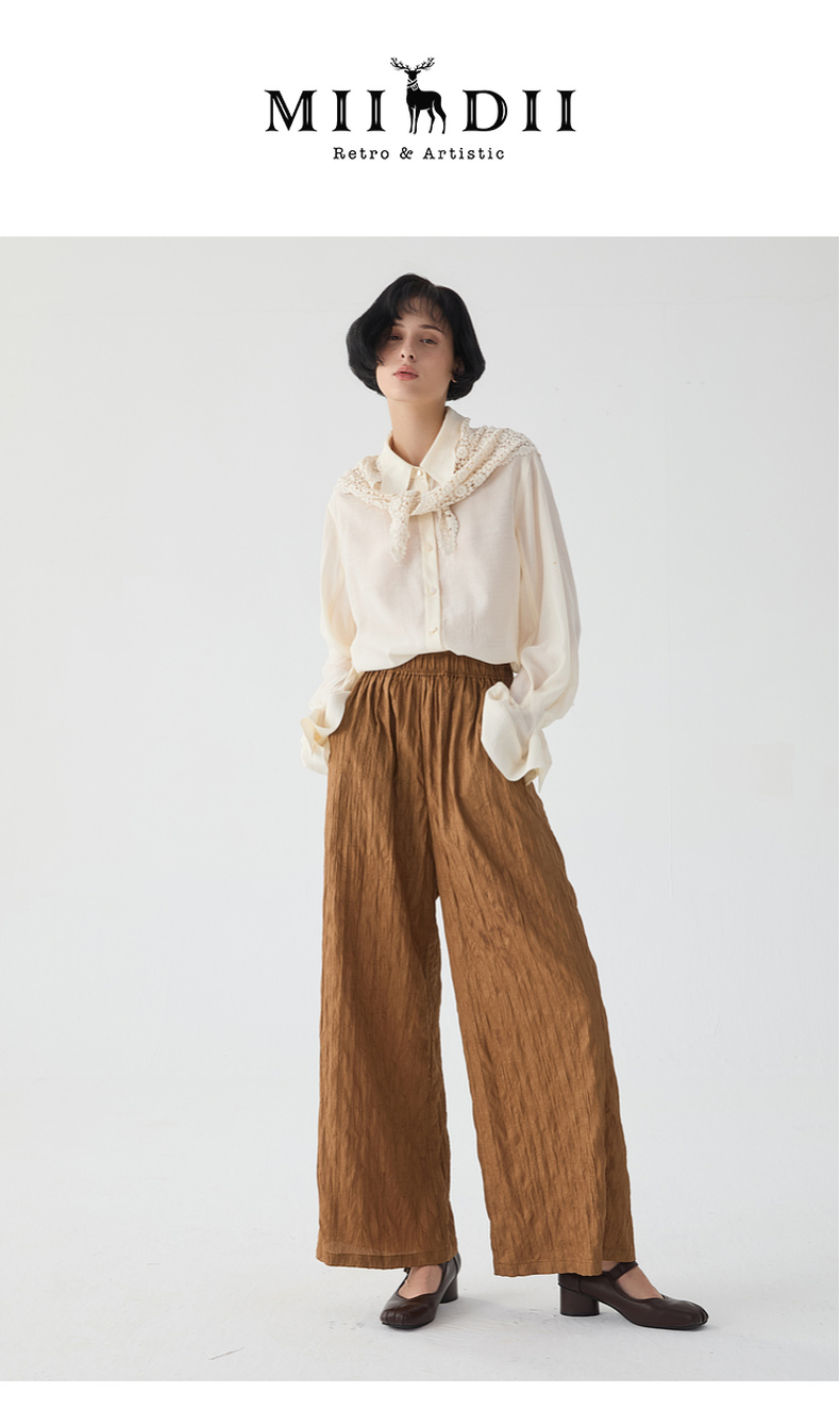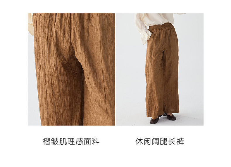 谜底阔腿裤长裤女2025春新品时尚肌理褶皱感宽松休闲裤251MK0042