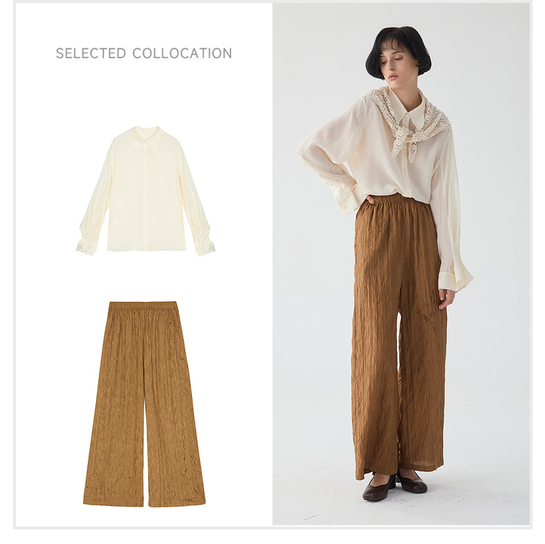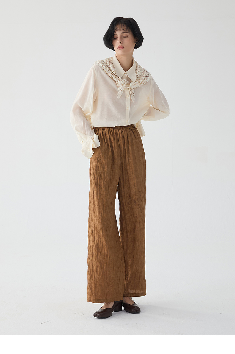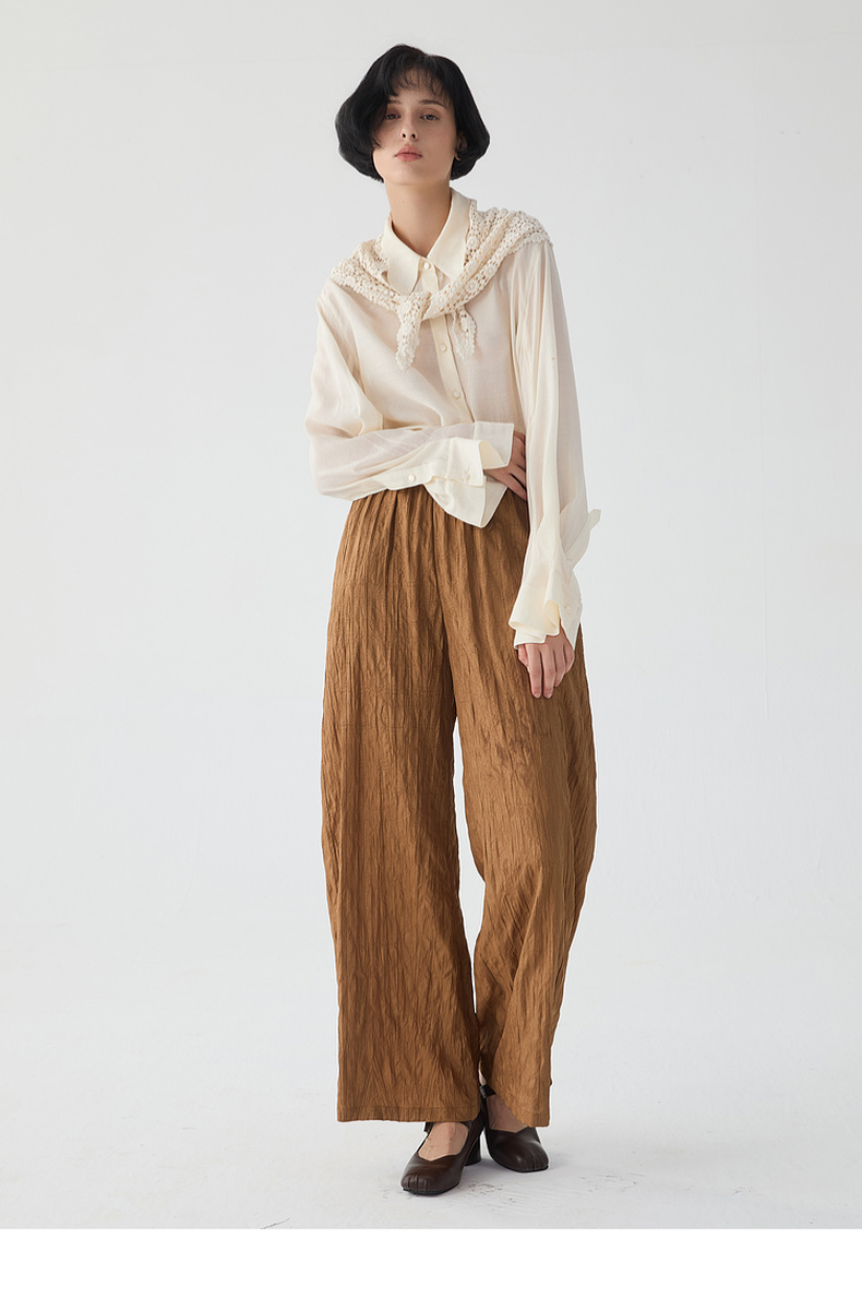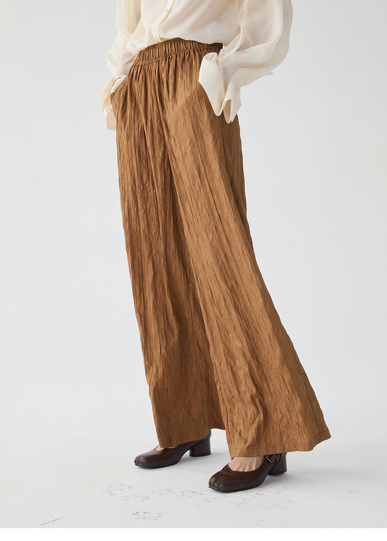 谜底阔腿裤长裤女2025春新品时尚肌理褶皱感宽松休闲裤251MK0042