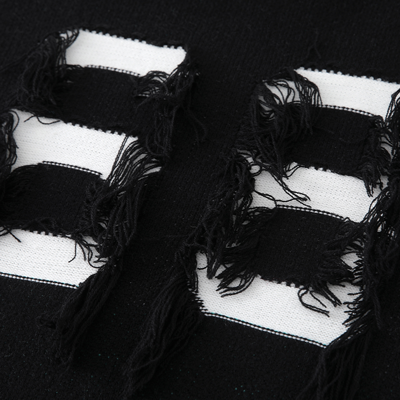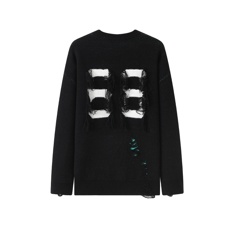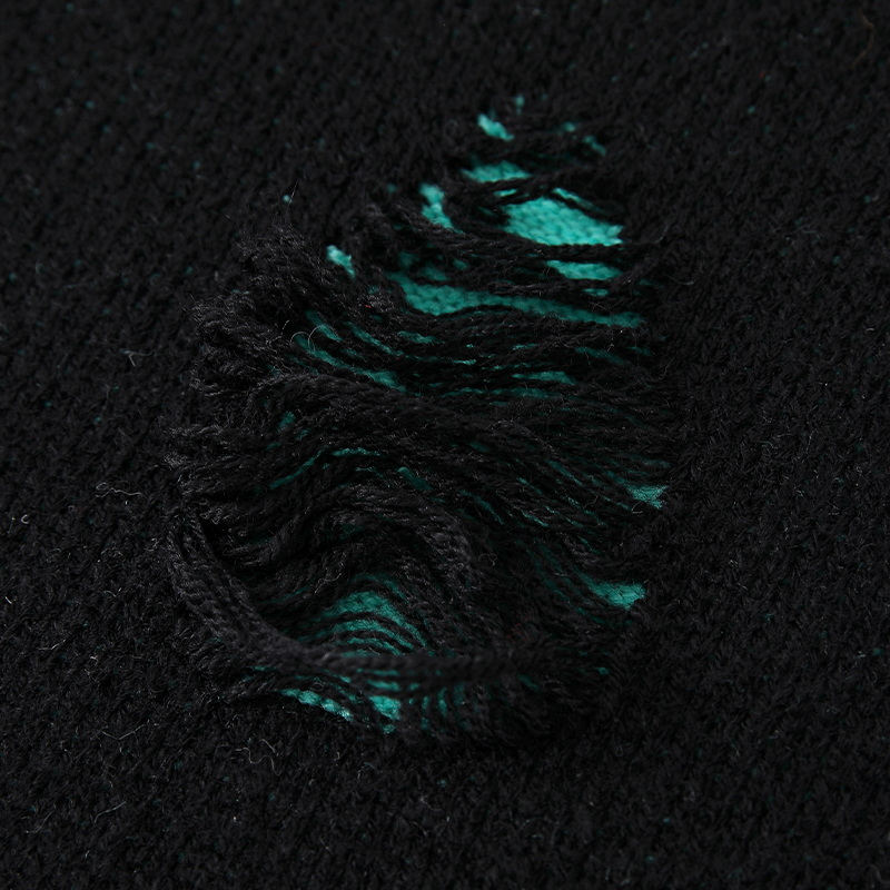 YKYB破坏毛边针织衫潮宽松落肩圆领外套个性美式街头嘻哈破洞毛衣