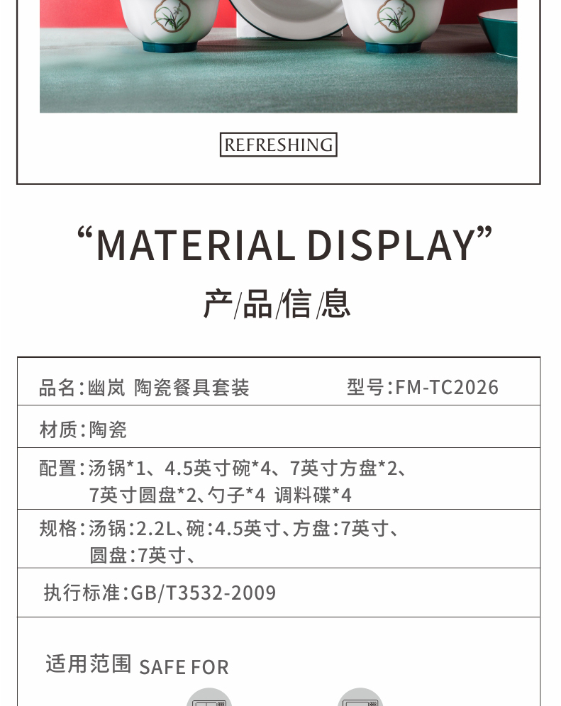 菲米生活幽岚陶瓷餐具套装碗蝶盘FM-TC2026