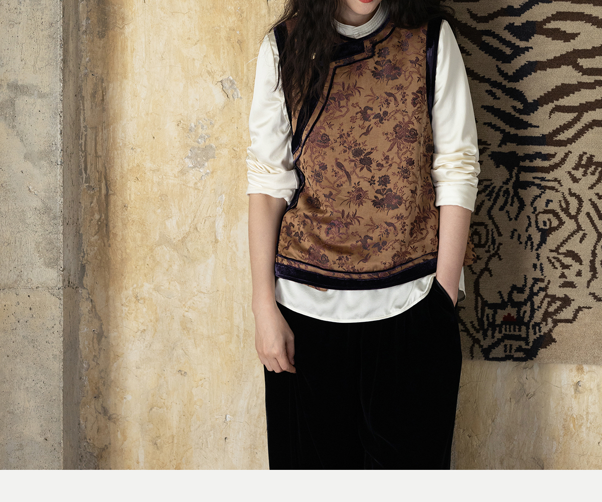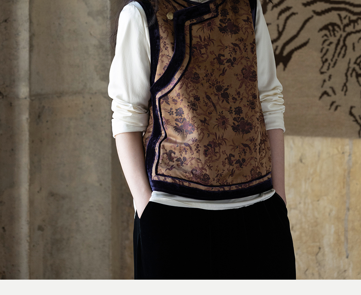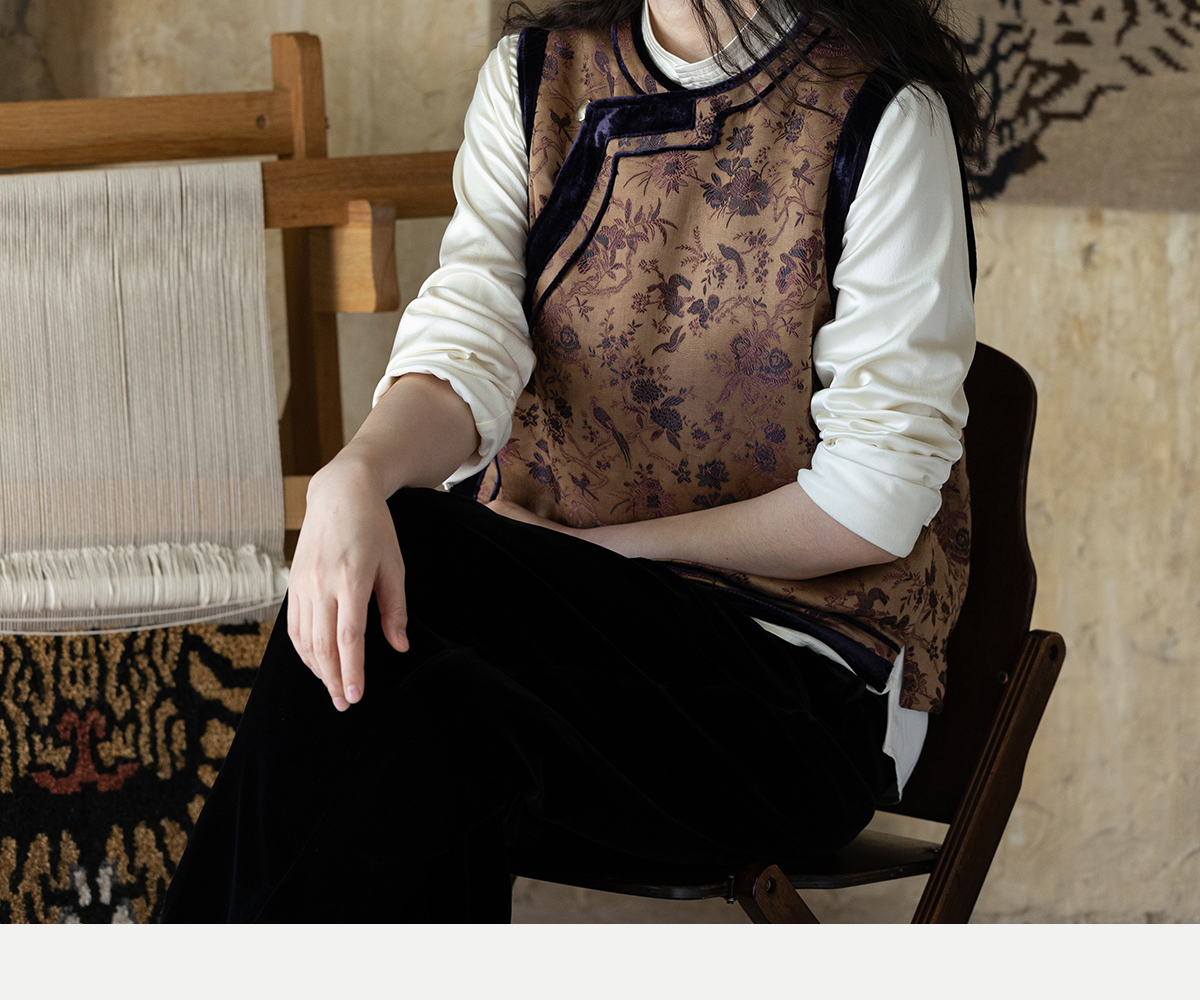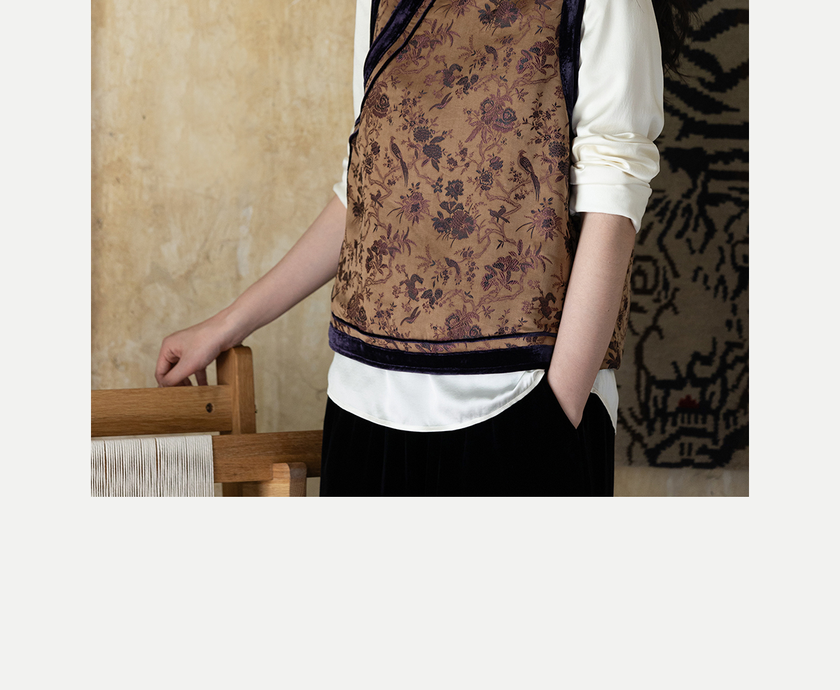牧衣游原创 重磅喜鹊登枝织锦马甲女藏袍民族风古朴百搭开衫 风翠