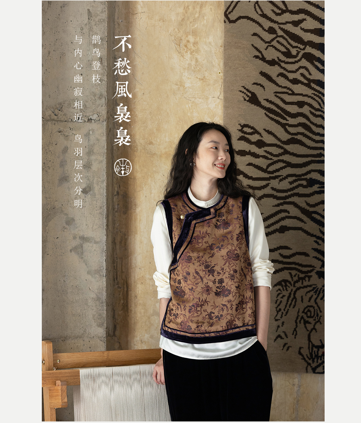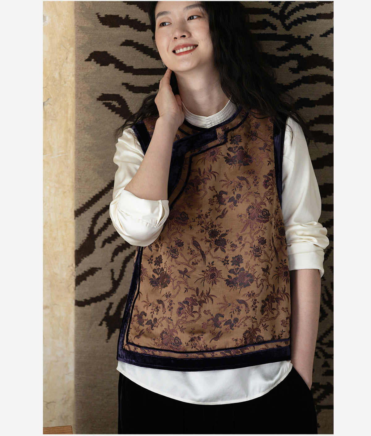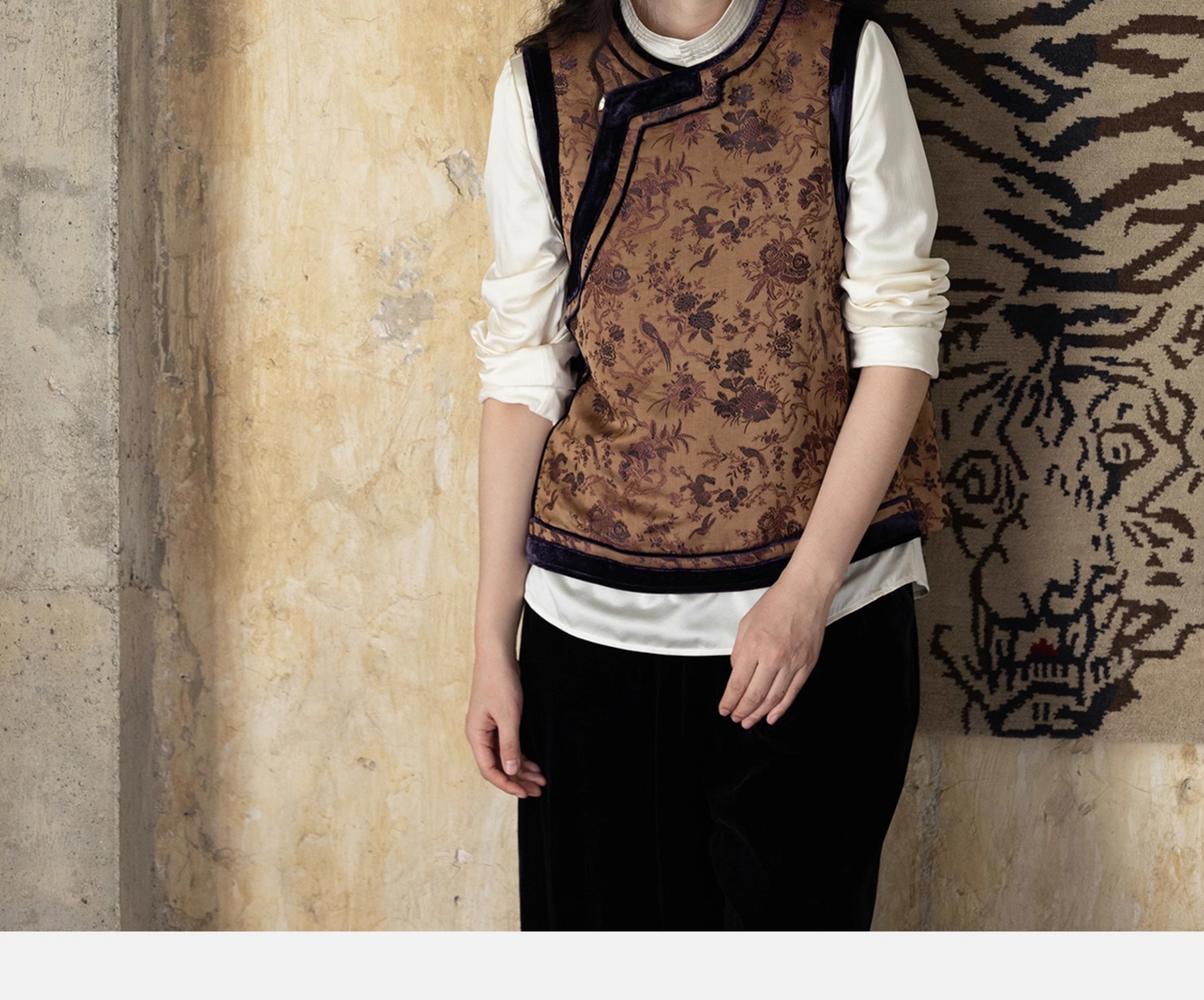 牧衣游原创 重磅喜鹊登枝织锦马甲女藏袍民族风古朴百搭开衫 风翠