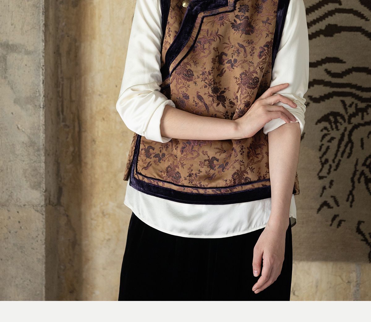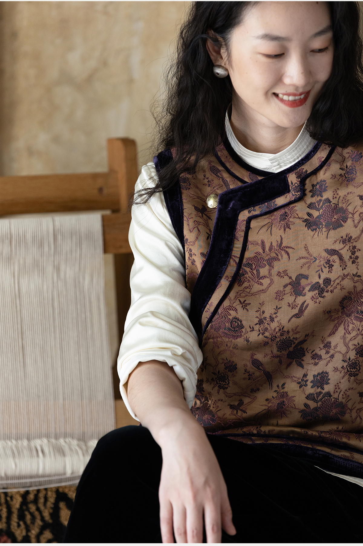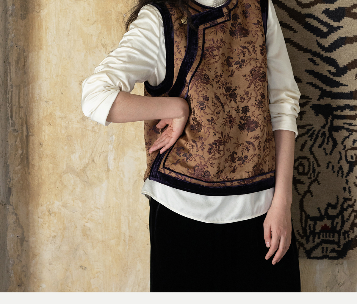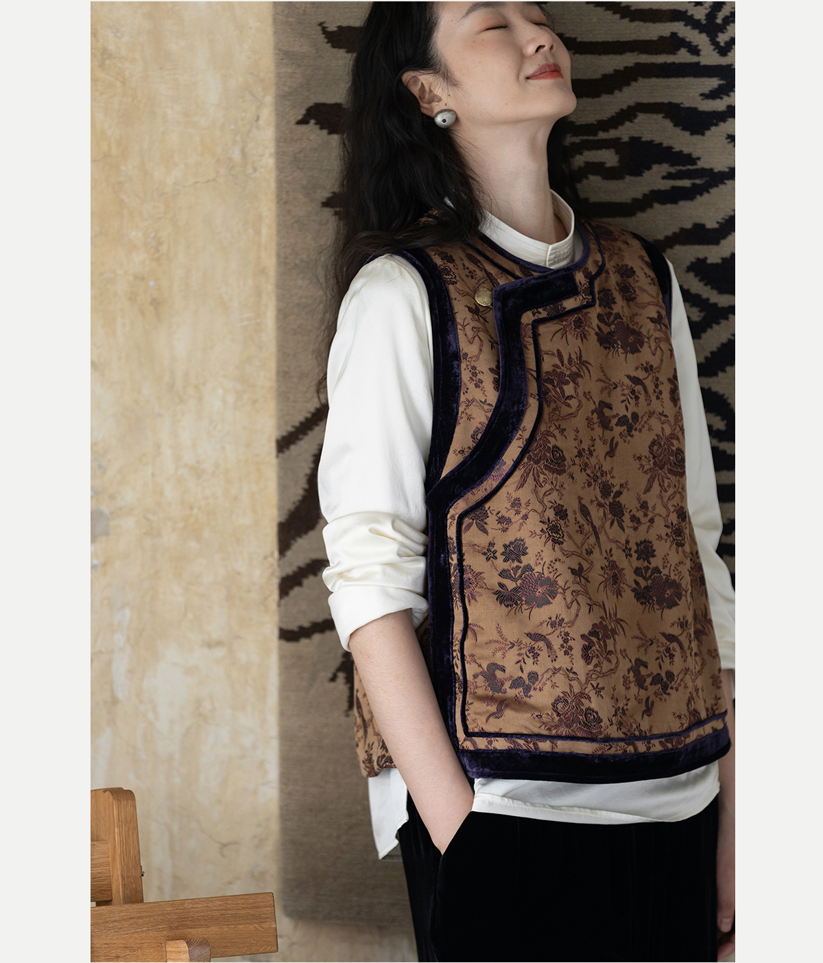 牧衣游原创 重磅喜鹊登枝织锦马甲女藏袍民族风古朴百搭开衫 风翠