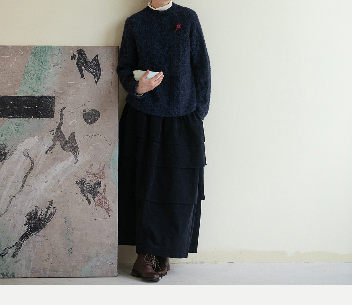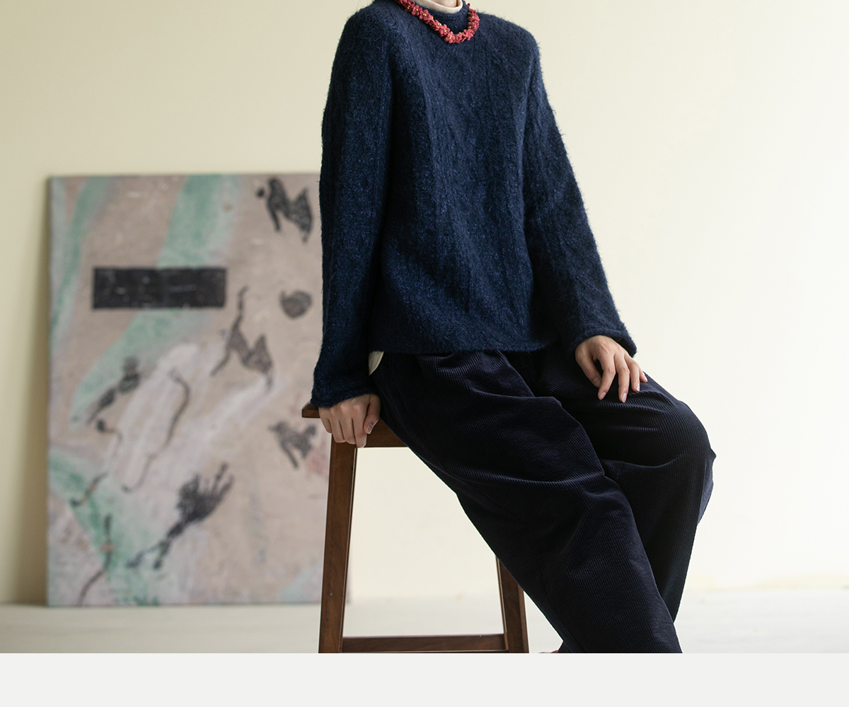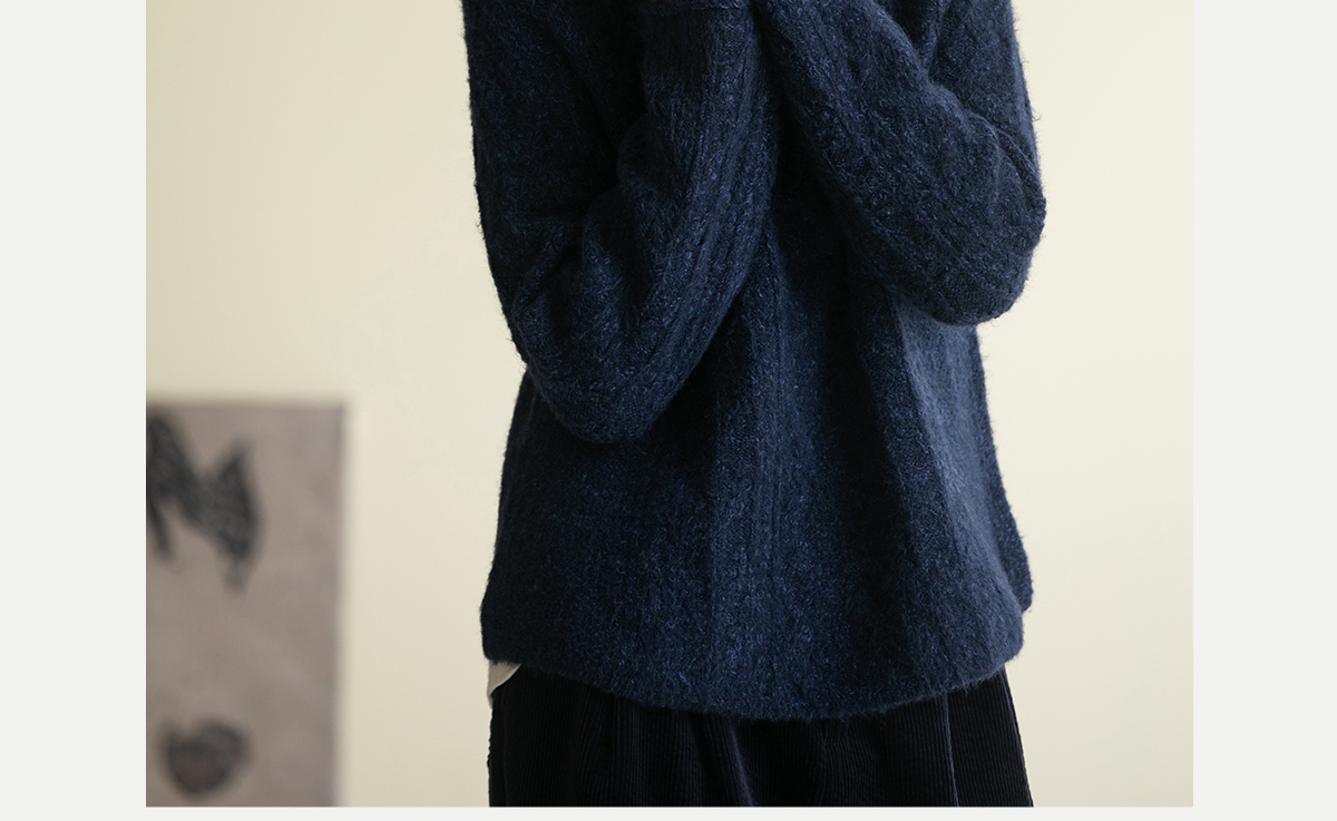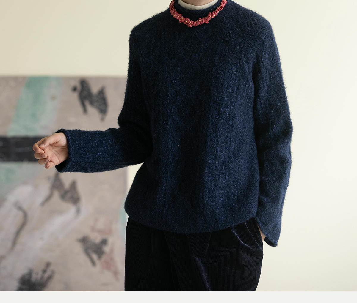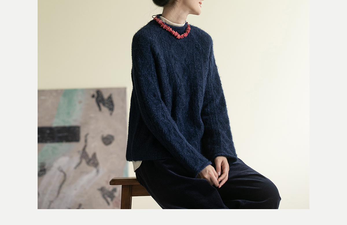 牧衣游原创 肌理感毛织套头衫女新款蓬松柔软圆领毛衣百搭 清川