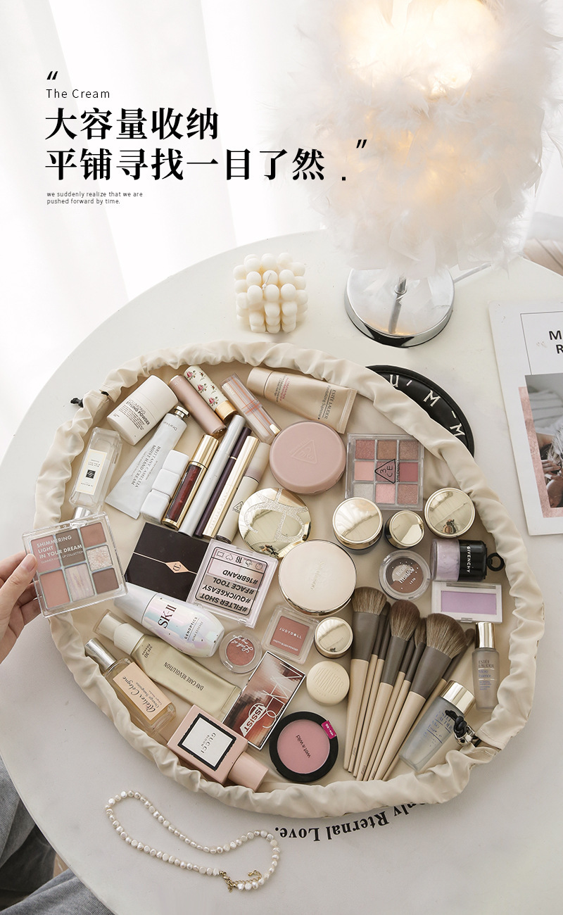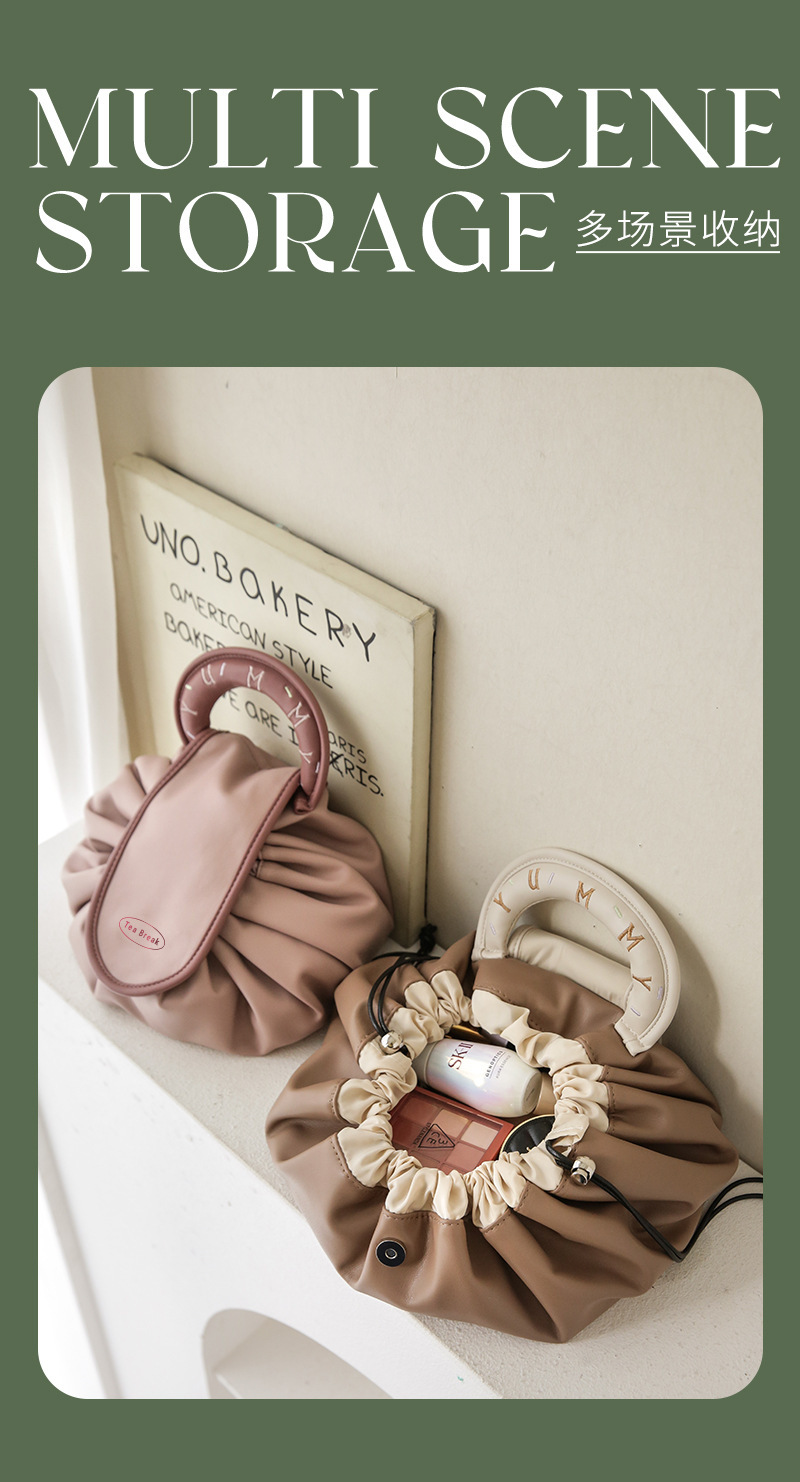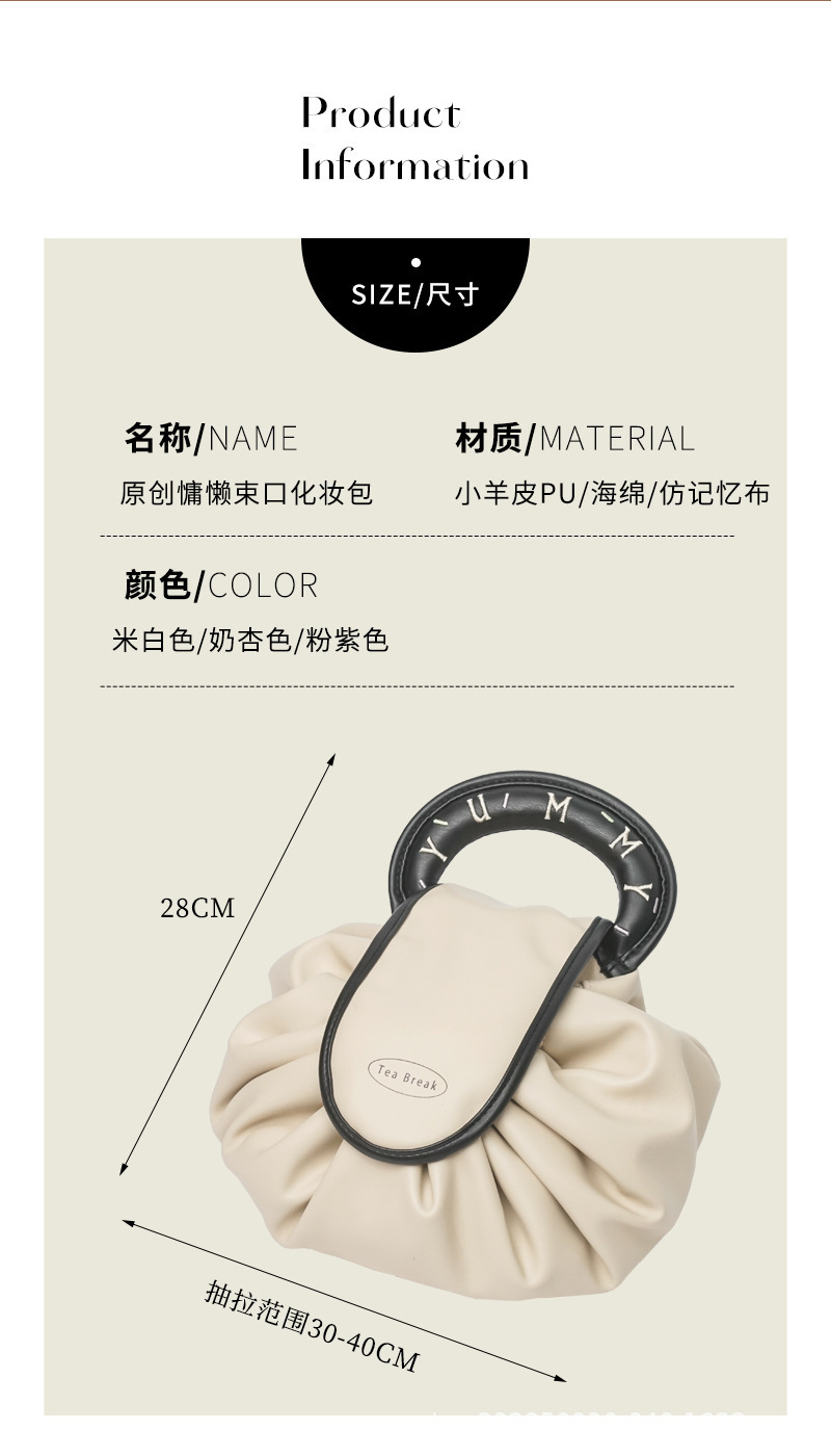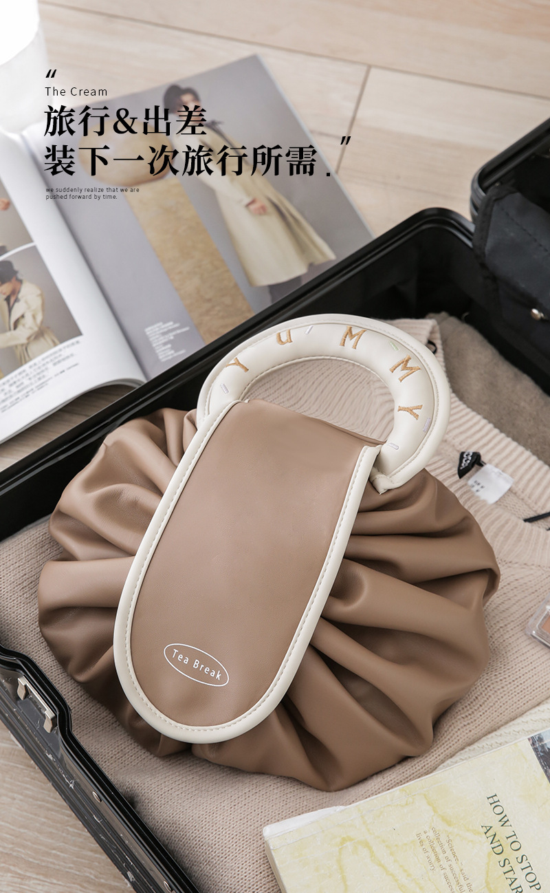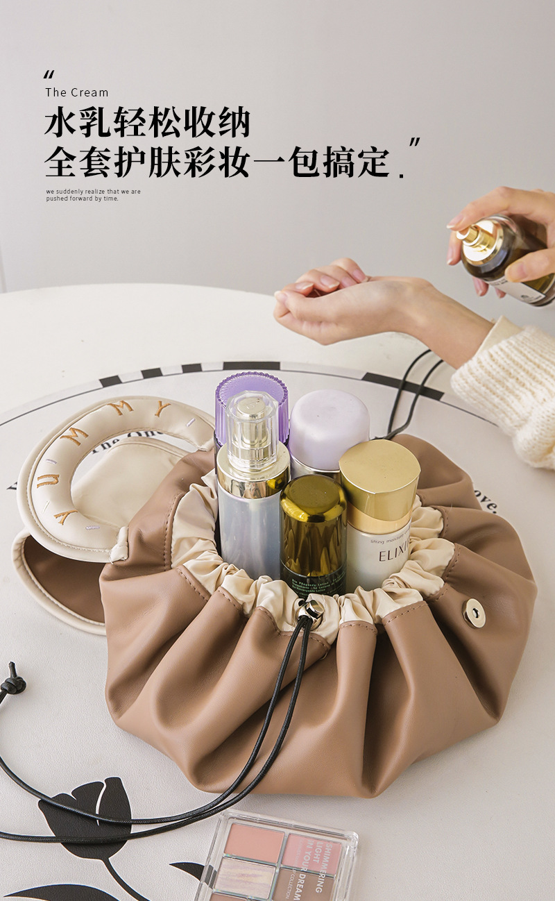 新款懒人抽绳化妆包女便携防水PU旅行洗漱包手提收纳袋盒箱高级