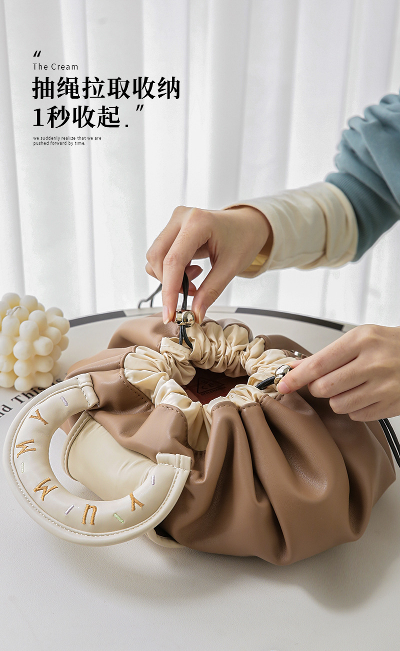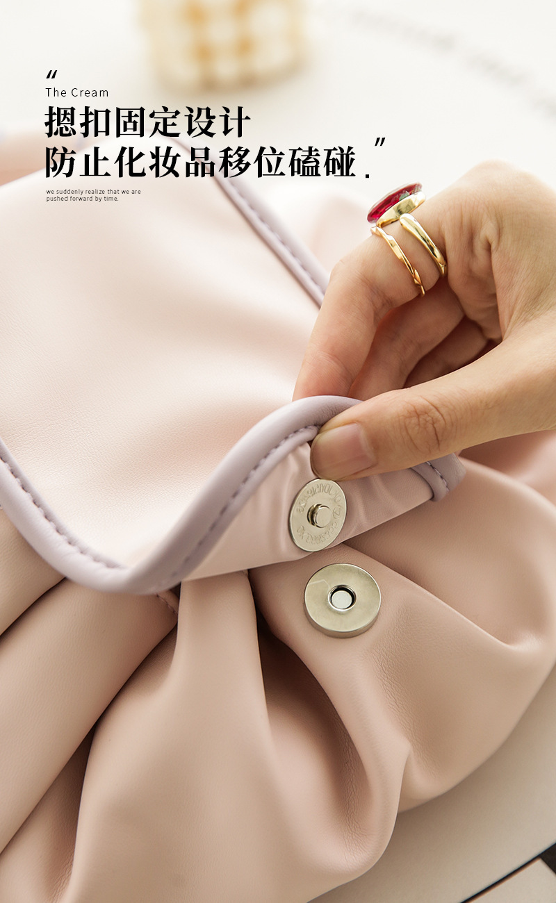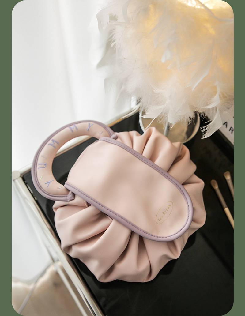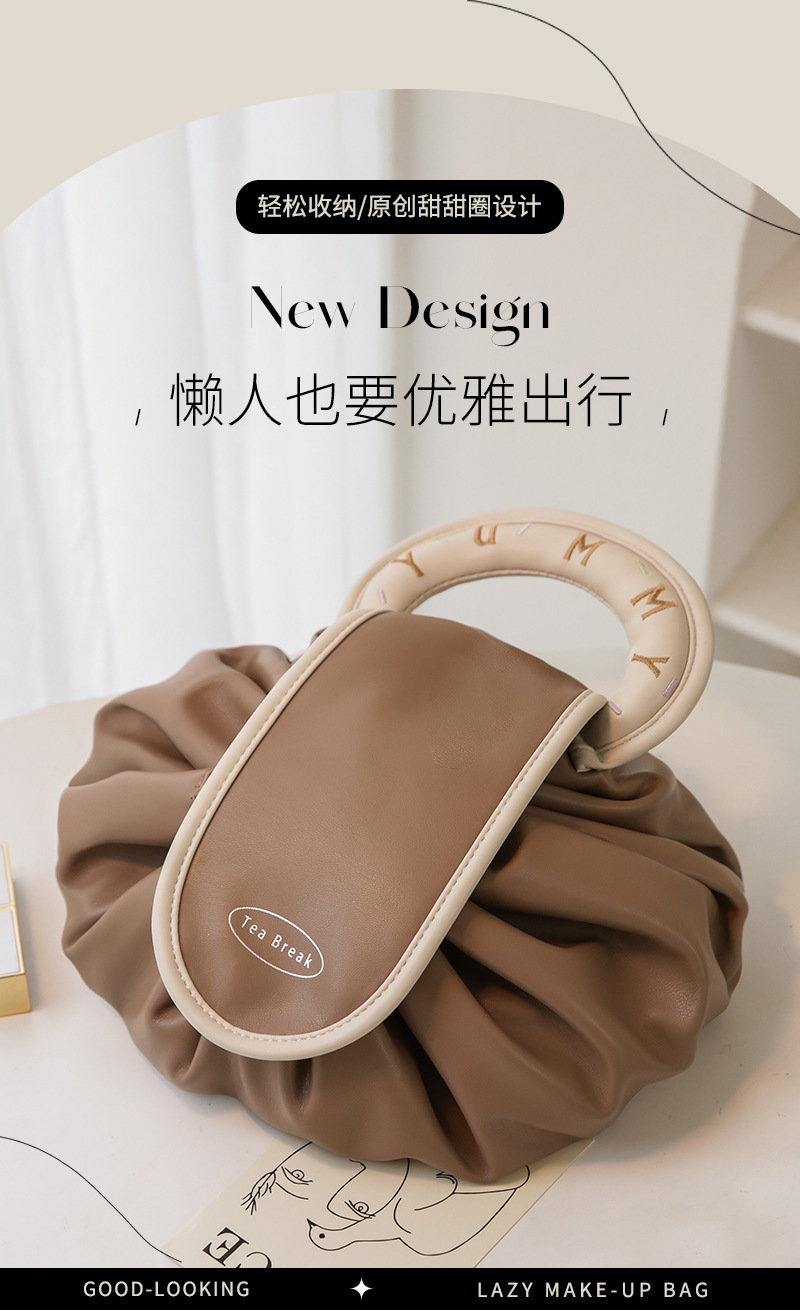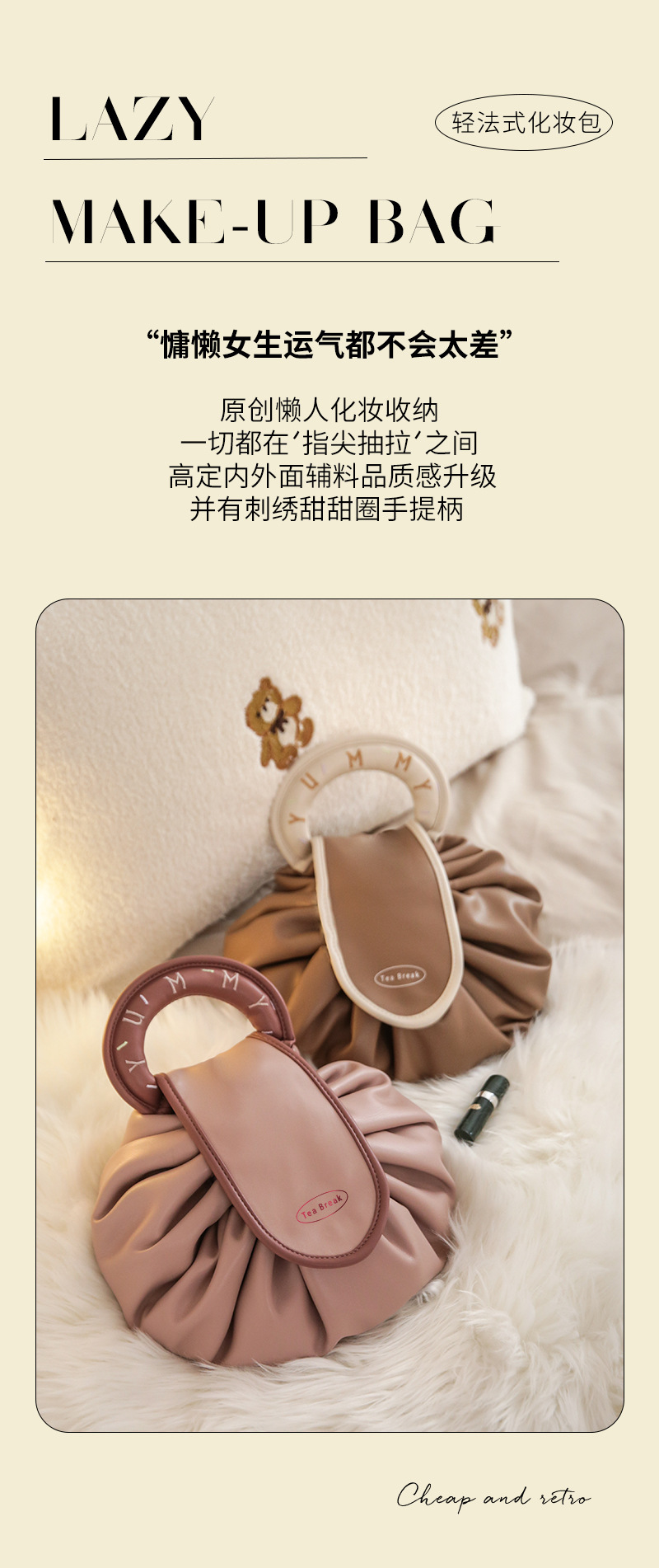 新款懒人抽绳化妆包女便携防水PU旅行洗漱包手提收纳袋盒箱高级