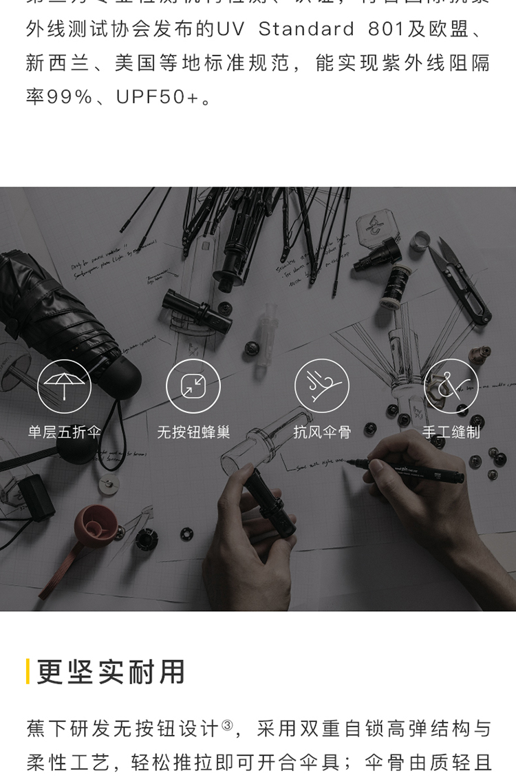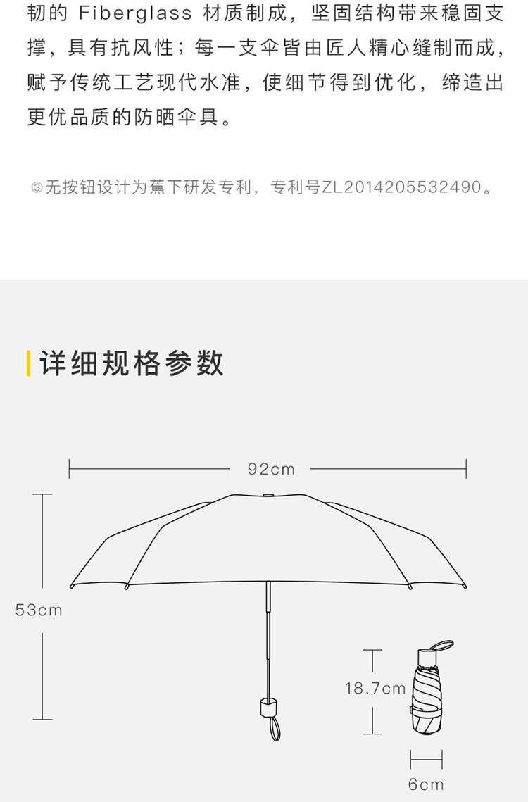 .【蕉下】/防晒/夏季/五折黑胶/防晒伞