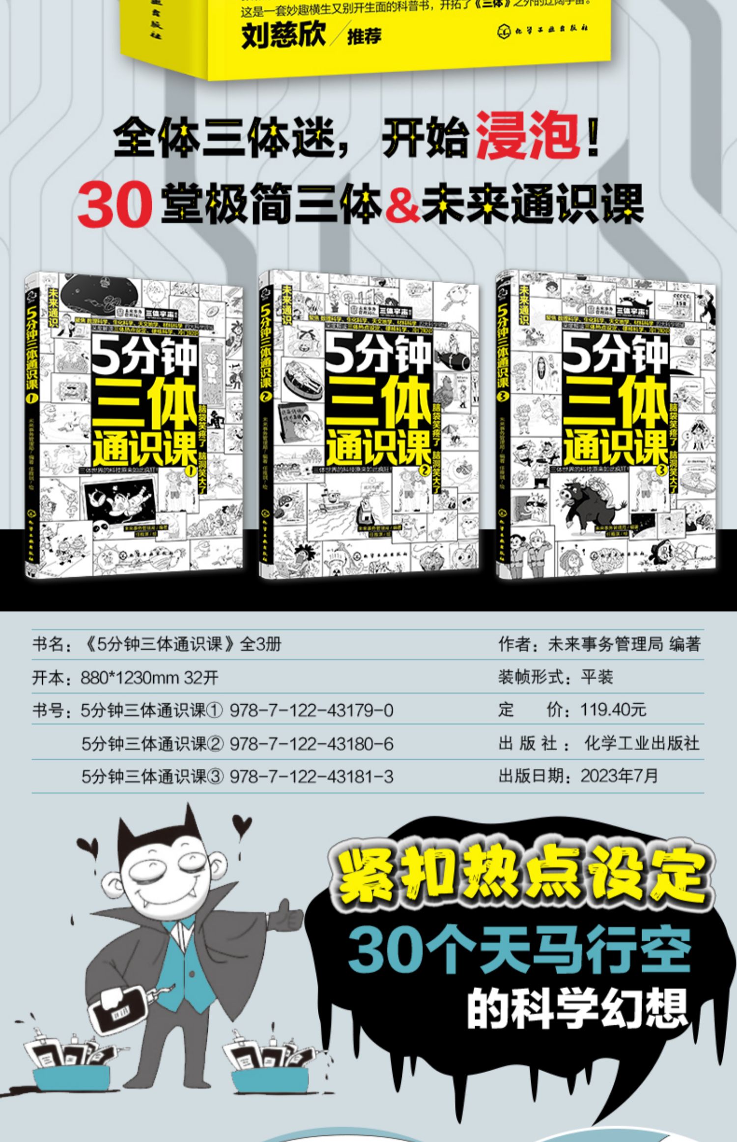 《5分钟三体通识课》全3册 6-12岁 30堂极简三体&未来通识课 聚焦树立科学、生化科学、天文地学、材料科学四大科学领域 深度解读三体热点设定、硬核科学、冷门知识
