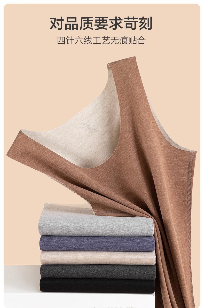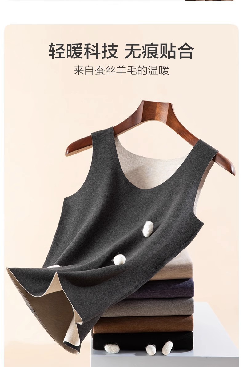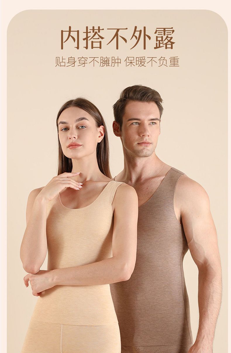 【买一送一 拍下发2件】羊毛蚕丝保暖情侣背心内衣男女生无痕内搭秋衣加双面绒打底衣马甲