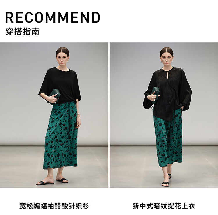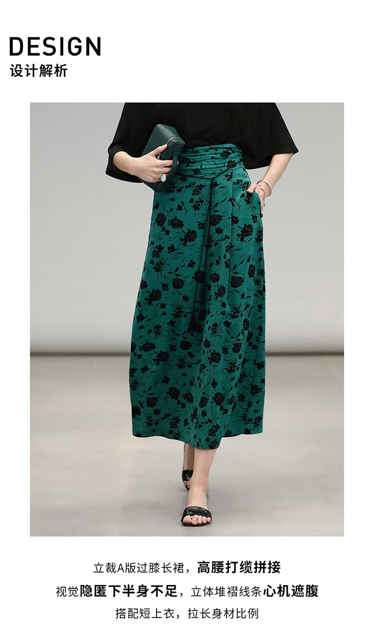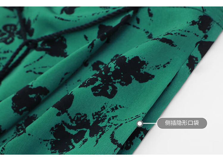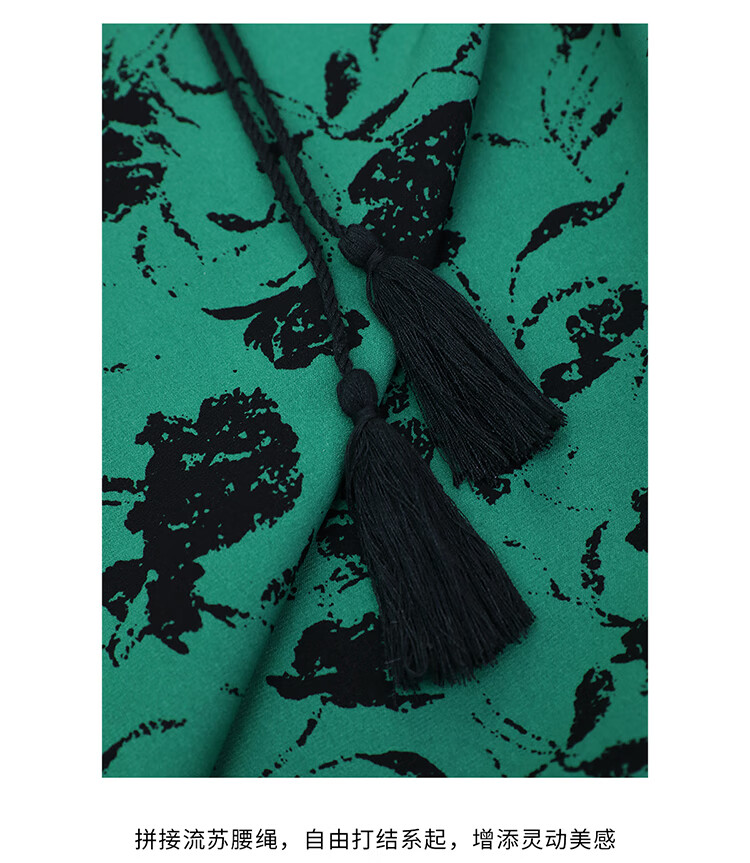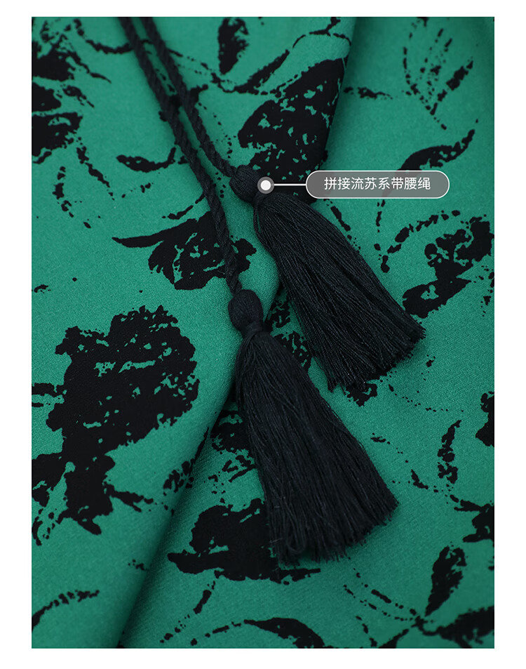 【限时秒杀】COCOBELLA流苏飘带高腰捏褶碎花半身裙开叉缎面长裙HS91